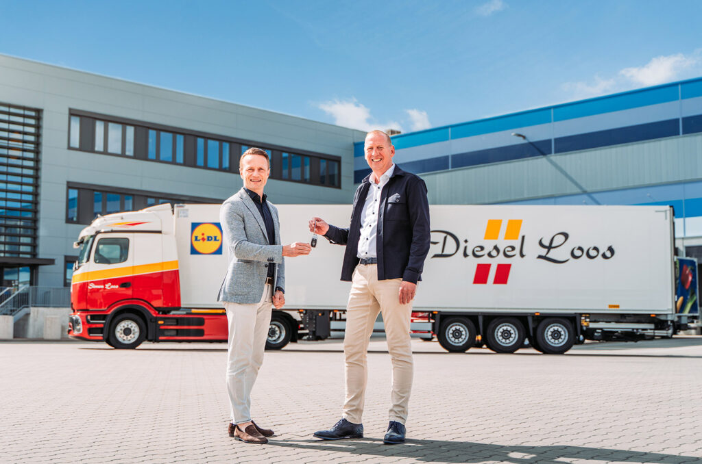 Deze week heeft Simon Loos twee Mercedes-Benz eActros 600 trucks in gebruik genomen voor de winkeldistributie van Lidl, geleverd door Mercedes-Benz truckdealer Gomes Noord-Holland.