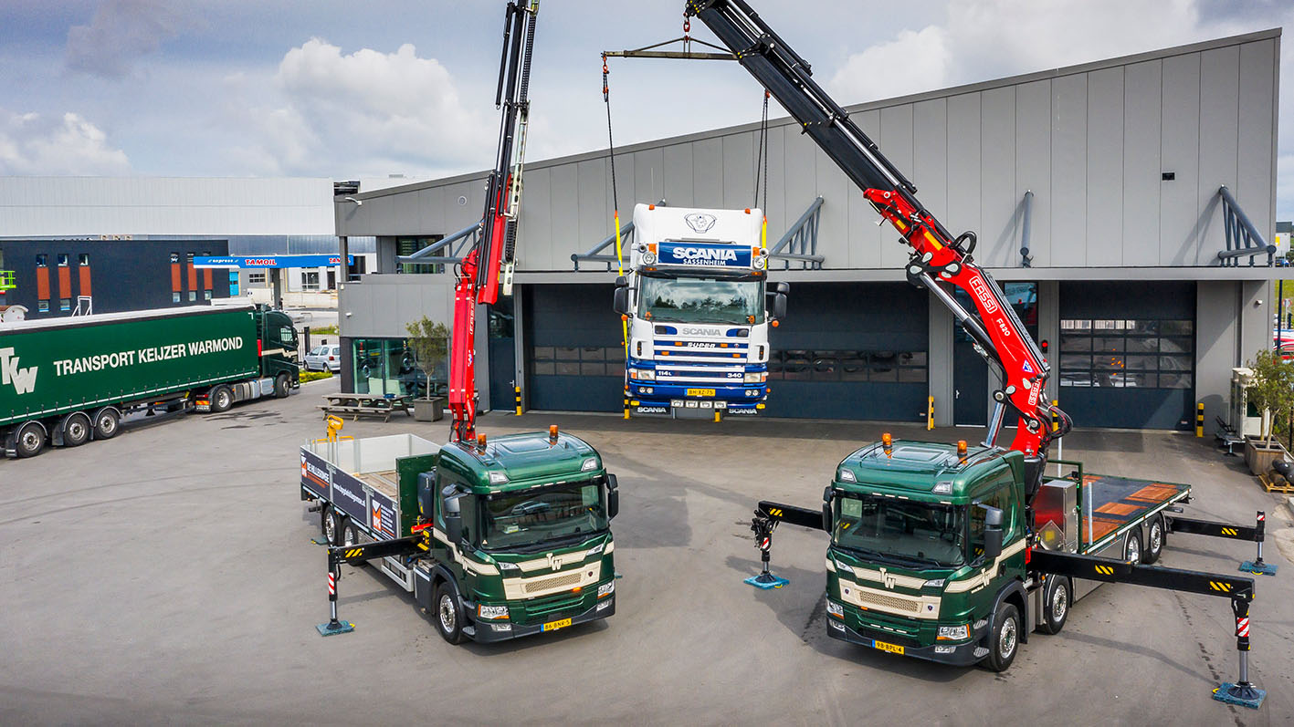 Transport Keijzer uit Oegstgeest (TKW) kocht recent voor het eerst twee nieuwe Scania’s met een hoge P-cabine en een Fassi laadkraan. Het bedrijf zegt dat één van de redenen om voor Scania te kiezen, het feit is dat dit merk standaard een hoge versie van de compacte P-cabine in zijn programma heeft. Dat combineert op een autolaadkraan een goede gewichtsverdeling met voldoende ruimte voor de chauffeur én een goed aanzien.