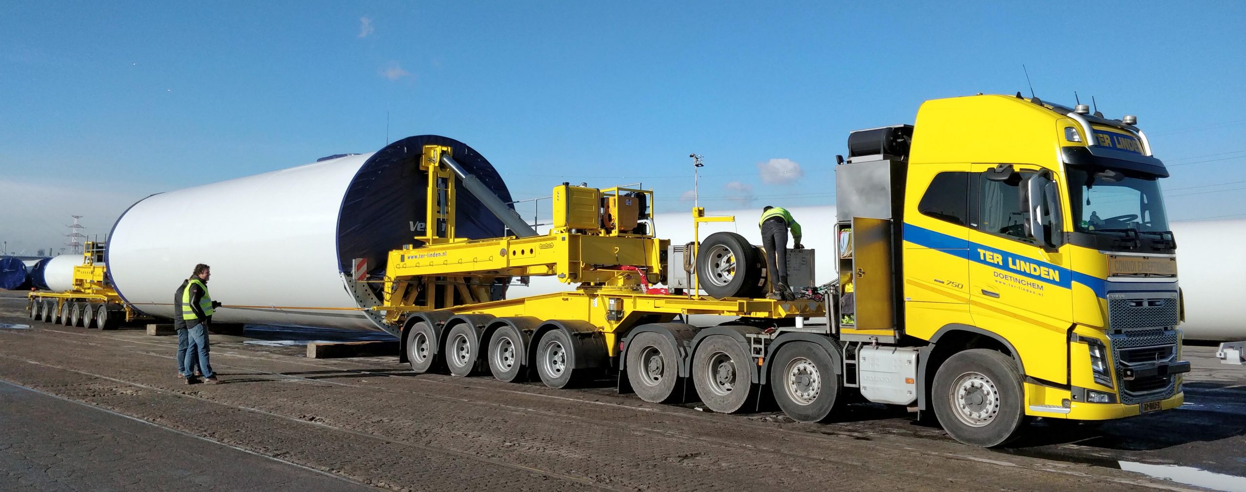 Ter Linden Transport uit Doetinchem heeft als eerste de nieuwste MWT-XL Mega Windmill Trailer in ontvangst genomen. Deze bestaat uit een 4-assige jeepdolly met liftadapter en een 7-assige naloopdolly met liftadapter.