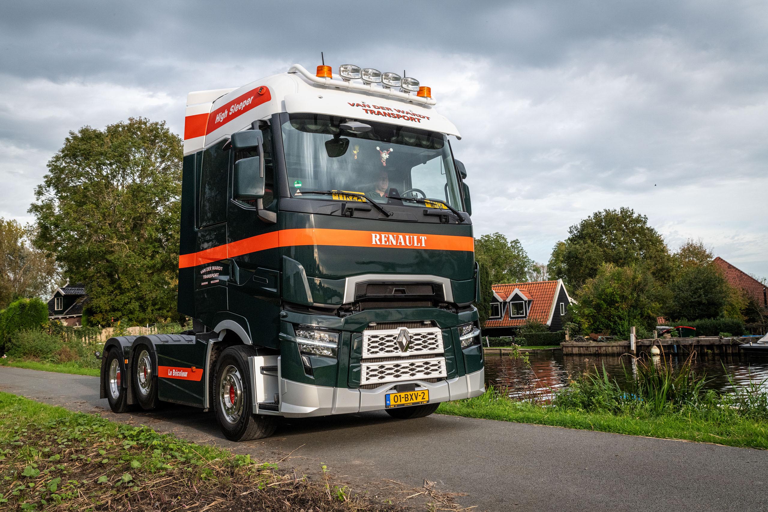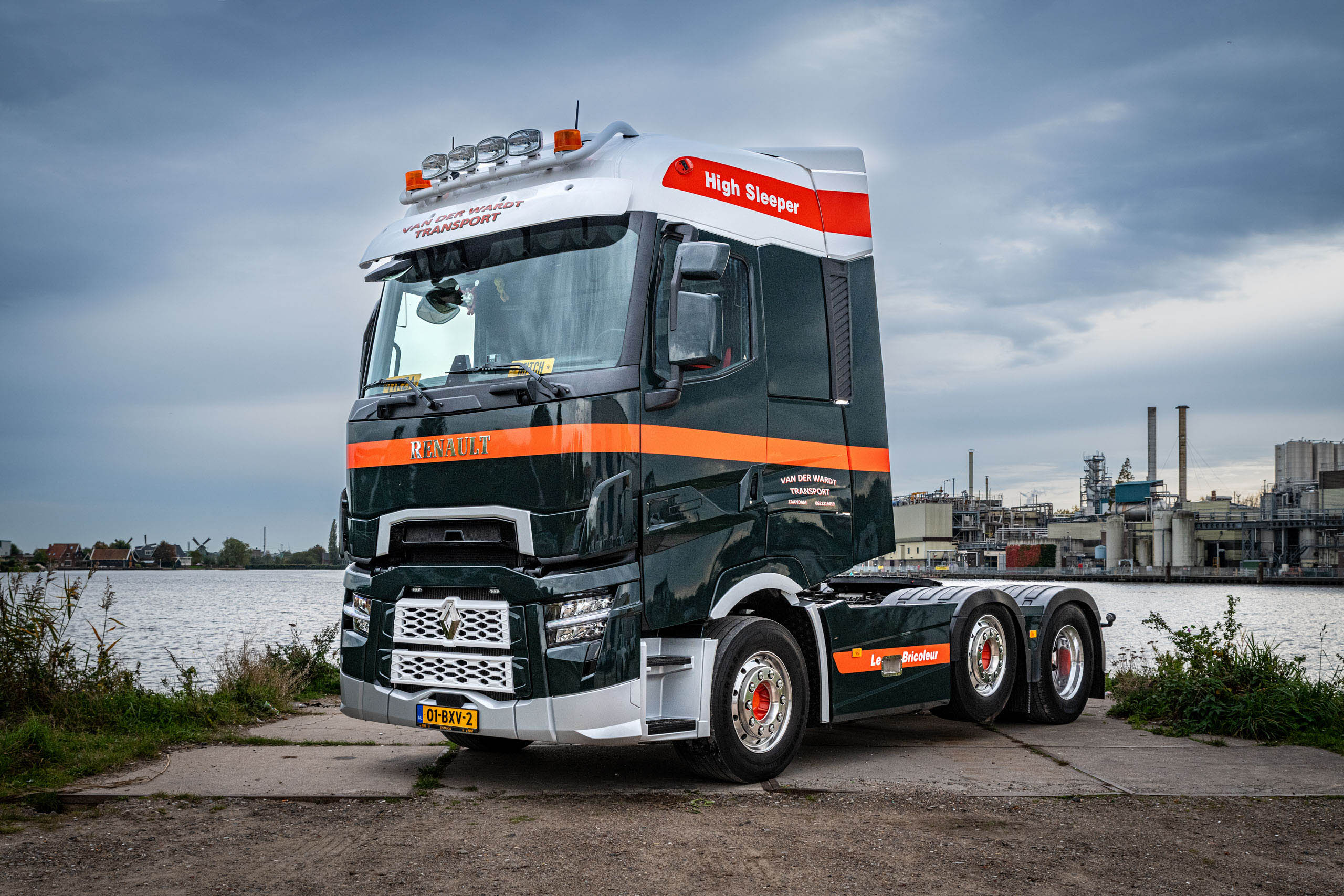 Bijzonder detail is de naam op de cabine. “Elke truck in onze vloot heeft een eigen Franse naam”, vertelt René van der Wardt. “Dat is ooit als een soort grap ontstaan omdat ik vroeger altijd op Frankrijk reed. Op de T High staat ‘Le Bricoleur’, oftewel de klusjesman. Dat is de bijnaam van de chauffeur die met deze truck rijdt.”