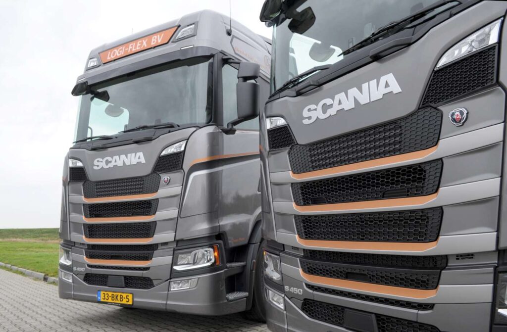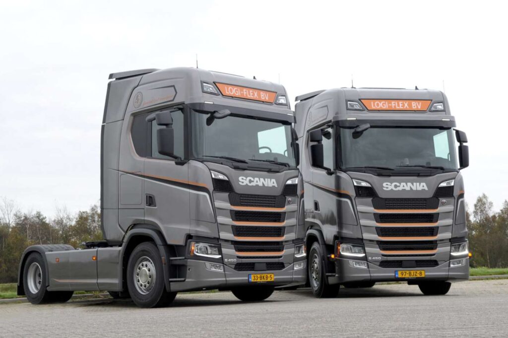 Logi-Flex begon in 2013 met één trekker. Aanvankelijk werd er gewerkt met Scania Rental trekkers die naar verloop van tijd werden aangeschaft. De firma uit Drachten deed al ervaring op met de R450 demo trekker van dealer Rinsma en dat zorgde naar eigen zeggen voor enthousiasme voor de ‘Nextgen’ Scania. Directeur Harry Koopmans: ,,Zowel het comfort als het lage verbruik waren voor ons reden om deze S450 trekkers aan te schaffen.’’