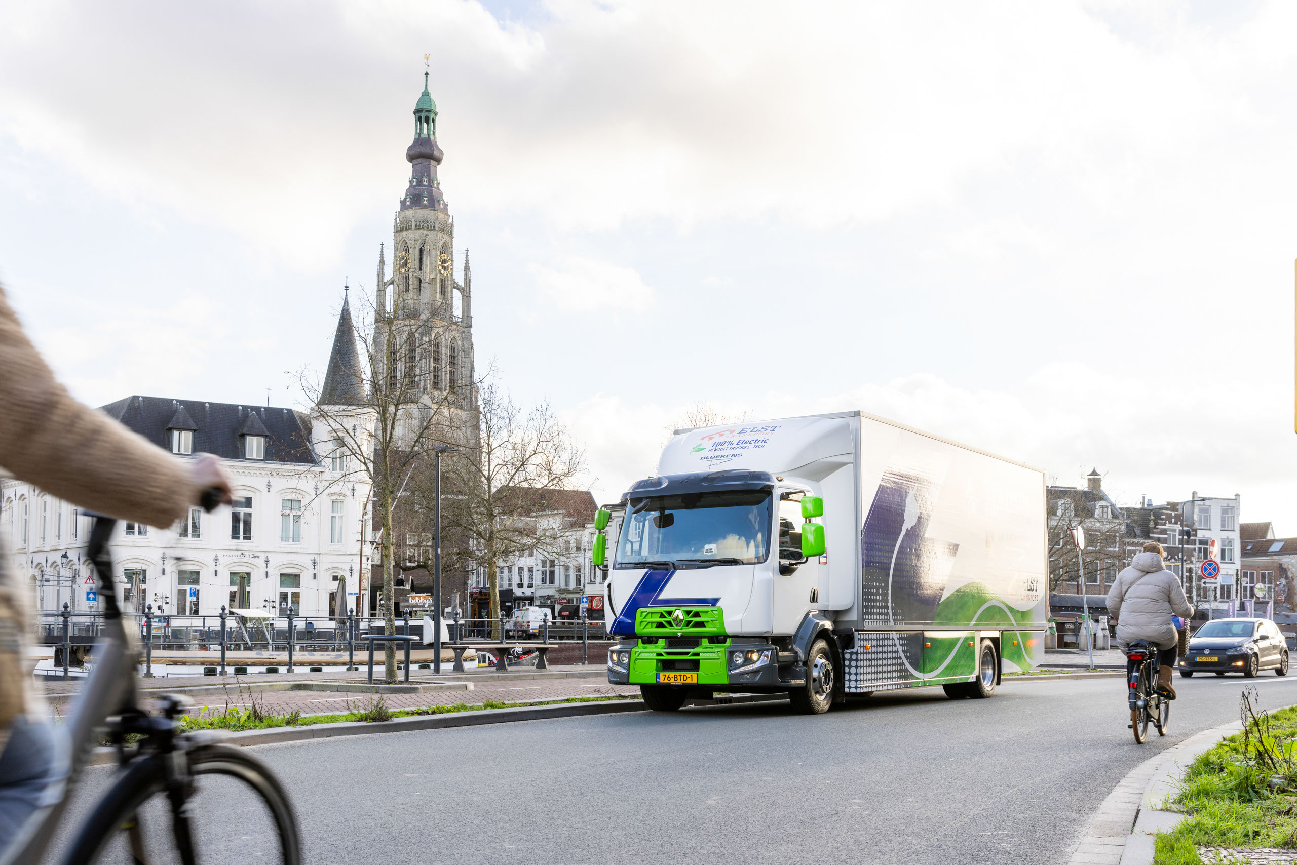 Elst Transport zet de elektrische truck in voor distributie in Breda en omgeving en de levering bij bouwprojecten in binnensteden. “Actieradius is voor ons een belangrijk aspect. Deze Renault Trucks D E-Tech, met vier batterijen van 66 kWh, heeft een bereik tot 264 kilometer. Een distributietruck rijdt bij ons tot 350 kilometer per dag dus het is ook voor onze planners een leerproces om te kijken hoe we deze truck zo goed mogelijk kunnen inzetten.”