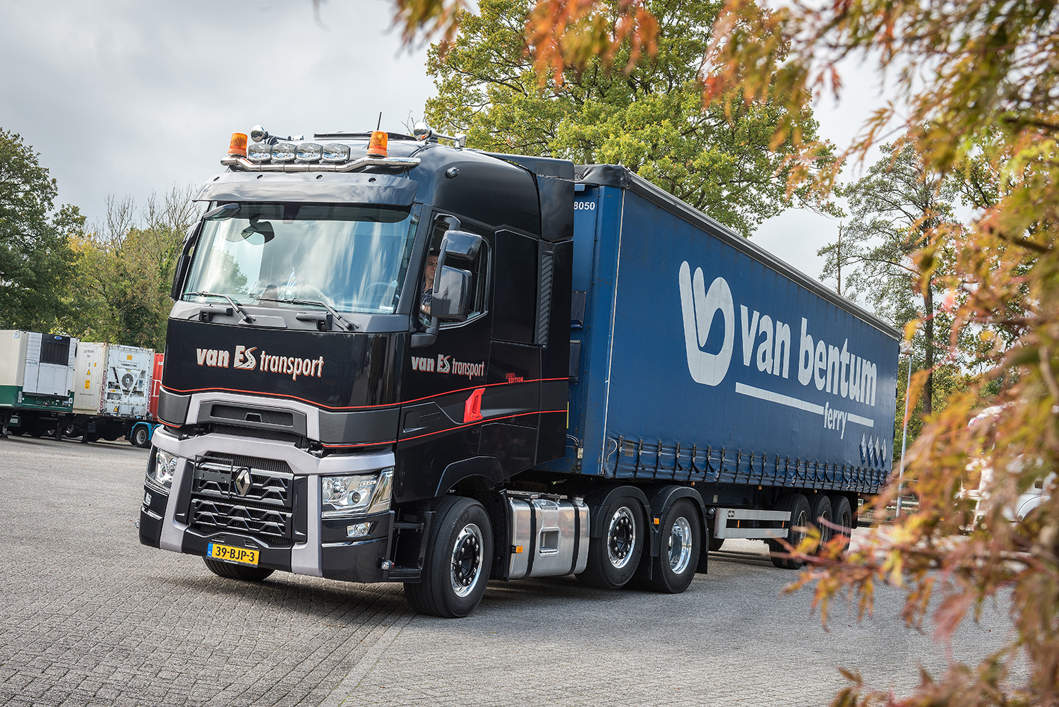 Jan-Kees van Es rijdt ferrytrailers voor verladers in Nederland, België, Duitsland en Noord-Frankrijk. Zijn vertrekpunt, maar ook eindbestemming, is vaak het Rotterdamse havengebied en het Belgische Zeebrugge. Als chauffeur in loondienst maakte Van Es kennis met Renault. En dat beviel goed. Zijn eerste investering als eigen rijder was dan ook een gebruikte Renault Magnum, die nu, na bijna 900.000 kilometers, plaats moet maken voor een nieuwe trekker. ,,Ik ben aan het merk verknocht geraakt, niet in de laatste plaats vanwege het verbruik en de betrouwbaarheid. Daarnaast is de Renault T gunstig geprijsd, zeker gezien de vele functionele extra’s en luxe uitstraling. Ik krijg veel complimenten onderweg.”