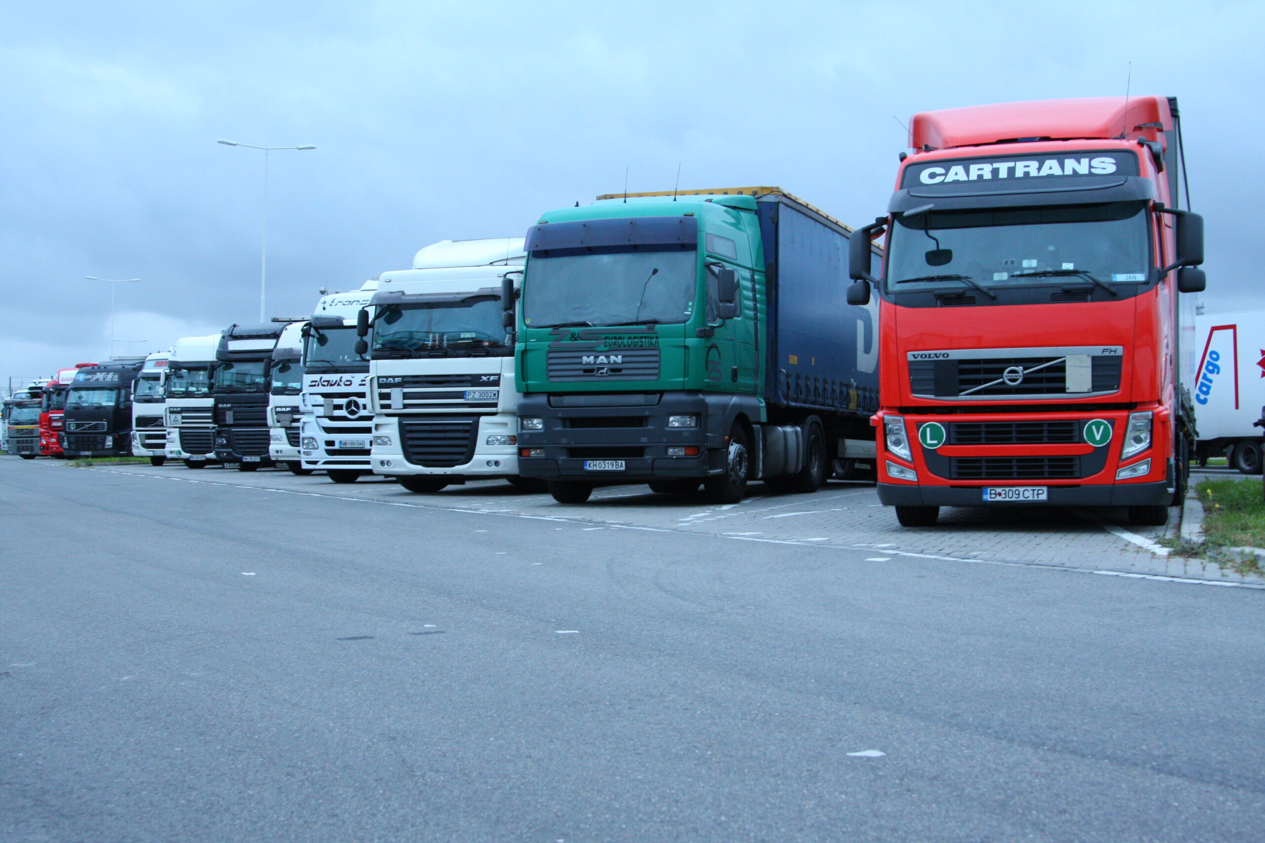 Foto: Overal in West-Europa staan de parkings in de weekenden vol met Oost-Europese trucks. De chauffeurs brengen op de parkings hun verplichte rustperiodes door.