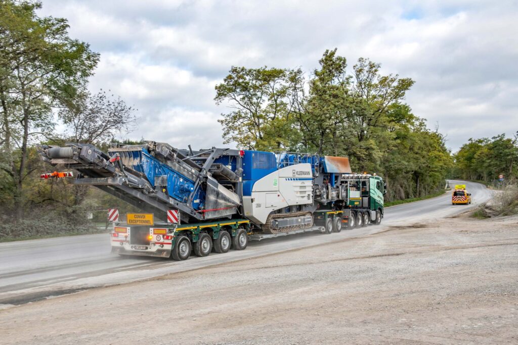 “Dankzij de hydraulisch gestuurde 19,5″-pendelassen van de VarioMAX Plus zijn ook rangeermanoeuvres op erg krappe plekken mogelijk”, vertelt Thomas David. Ditmaal duurde de rit slechts enkele minuten, omdat de eindbestemming al na 10 kilometer is bereikt. De Mathieu-groep moet regelmatig dergelijke opdrachten uitvoeren en houdt zich meer en meer bezig met de recycling van materialen uit de bouw. Daarom zullen zeker nog zwaardere breek- en bouwmachines een grote toekomst bieden.