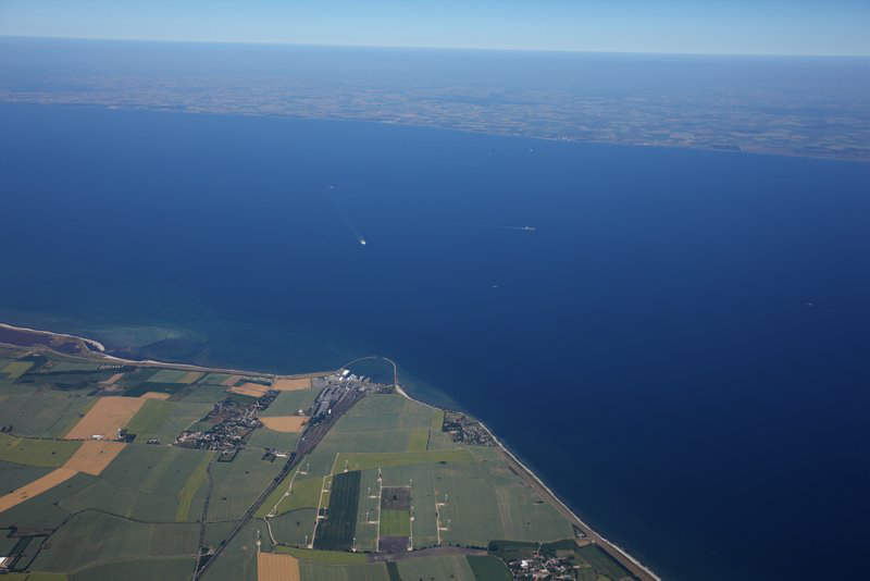 - Luchtfoto van de Fehmarnbelt genomen vanaf de Duitse kant op Fehmarn.