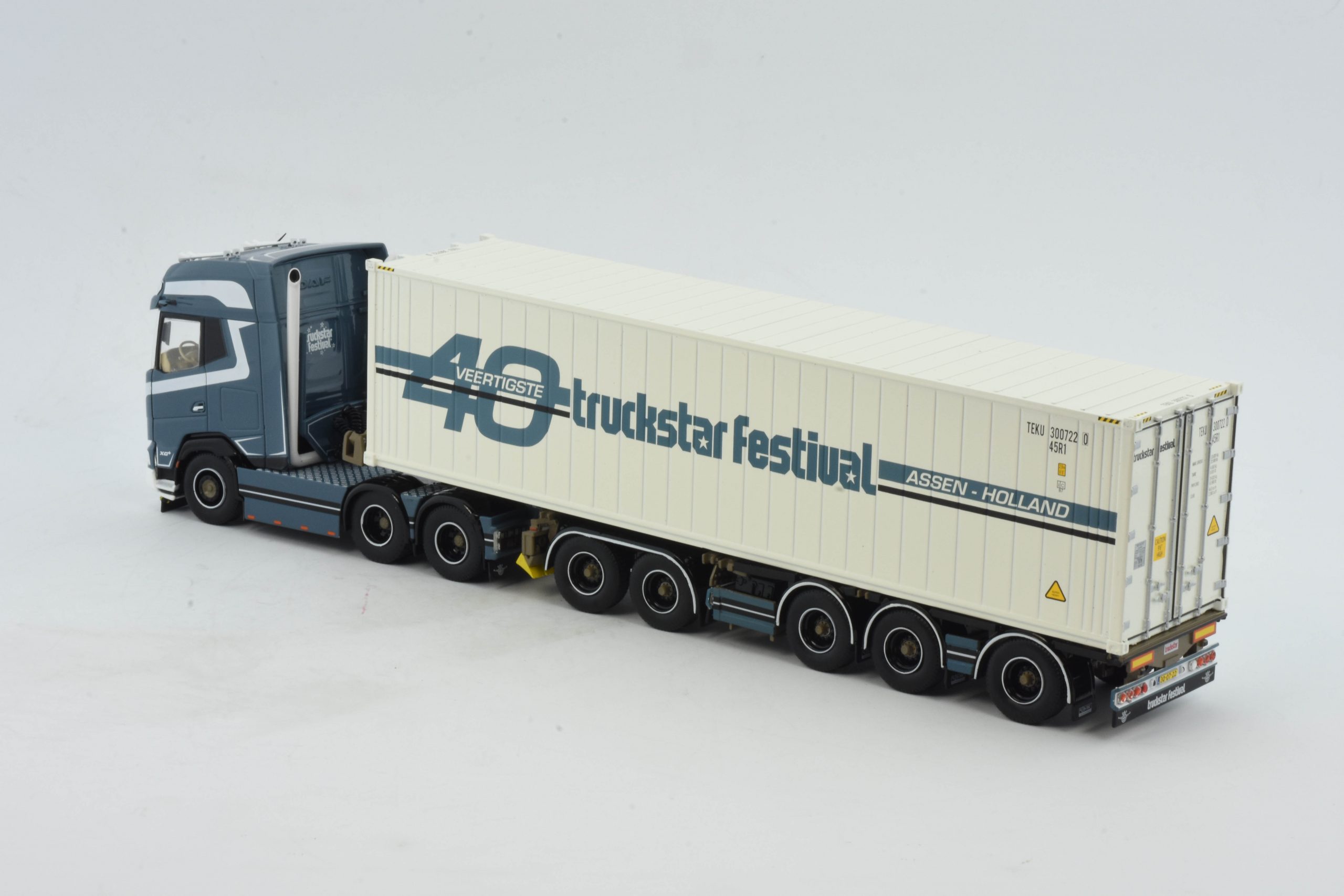 Voor dit festival is gekozen voor een DAF XG+ 6×2 530 sleepastrekker voorzien van een 5-assige D-TEC ‘breker’ containerchassis. Op dit chassis bevindt zich een 40ft. high cube reefer container. De trekker is verder voorzien van o.a. luchthoorns, verstralers, spatlappen met dagrijverlichting, staande uitlaten, een groot loopbordes, strings, skirts en een dikke Deense achterbumper. Er staat dus echt iets je vitrine.