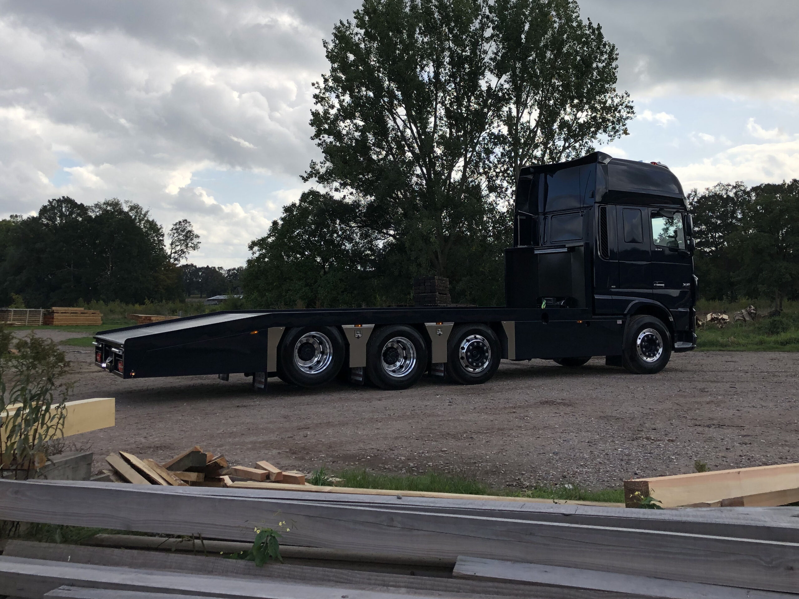 De metallic blauwe kleur past perfect bij deze fraaie DAF. Het resultaat mag er zijn en wat ons betreft geldt voor deze XF het motto ‘less is more’.
