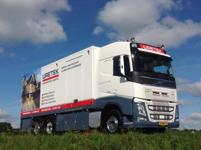 Uretek uit Lelystad, specialist in herstel van verzakte vloeren en funderingen, heeft een tweede Volvo FH 420 6×2-bakwagen aan de vloot toegevoegd. De goede ervaringen met de eerste truck en met dealer Harbers Trucks waren redenen om weer voor Volvo-trucks te kiezen.