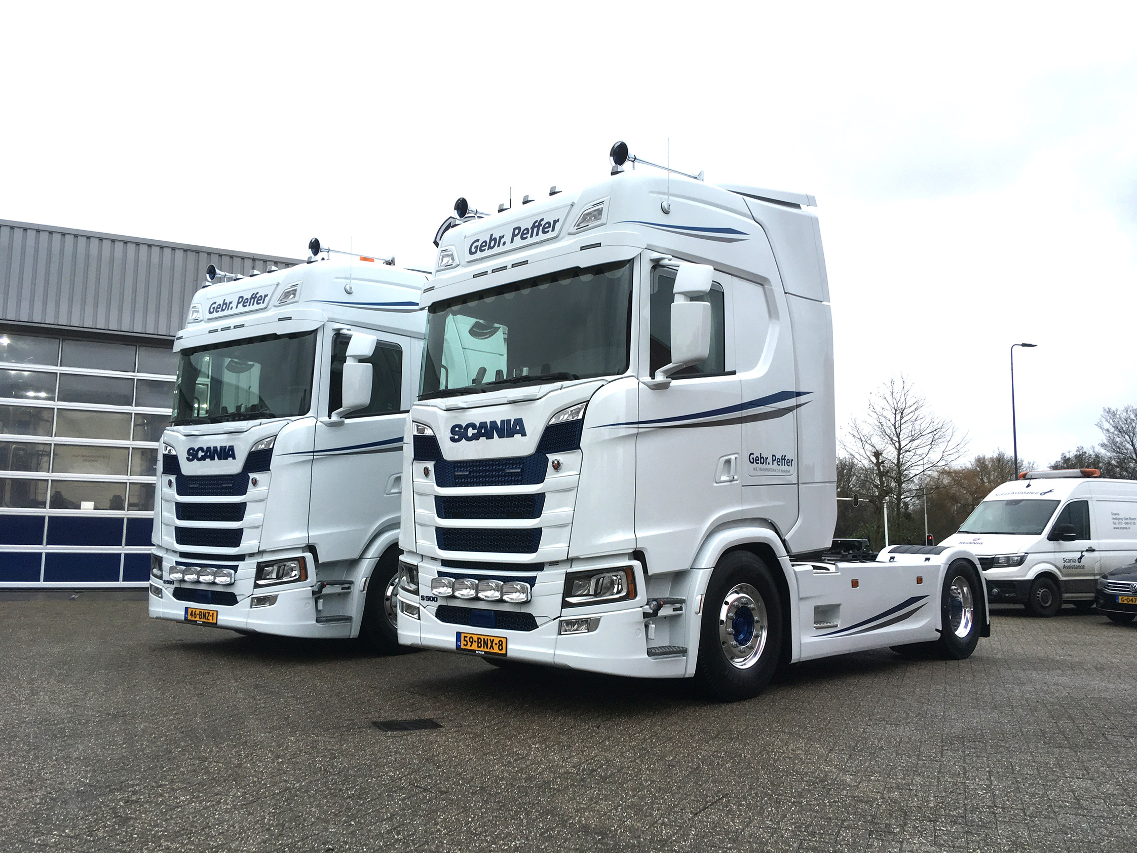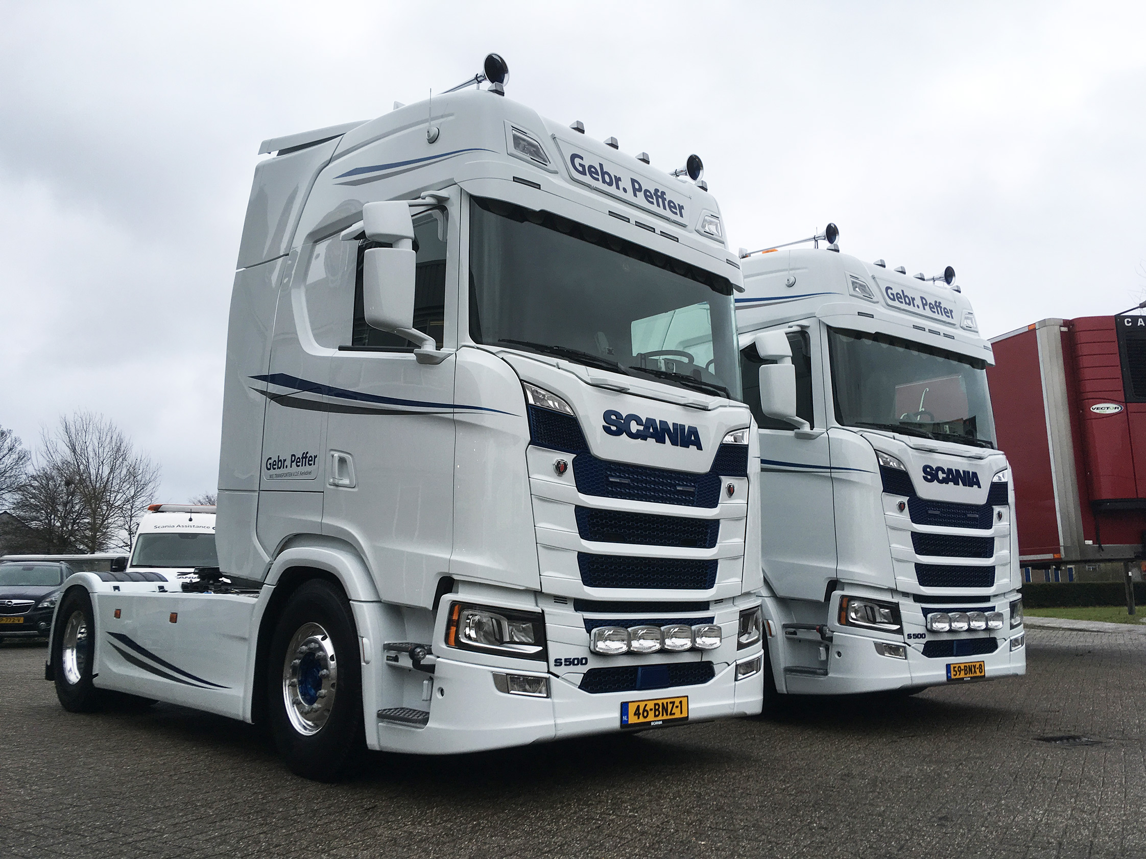 Eigenrijders Ger en Wout Peffer uit Kerkdriel vervingen recent hun trucks voor twee nieuwe Scania S500 4×2 twee trekkers. De beide broers rijden veel voor NedCargo in de levensmiddelen.