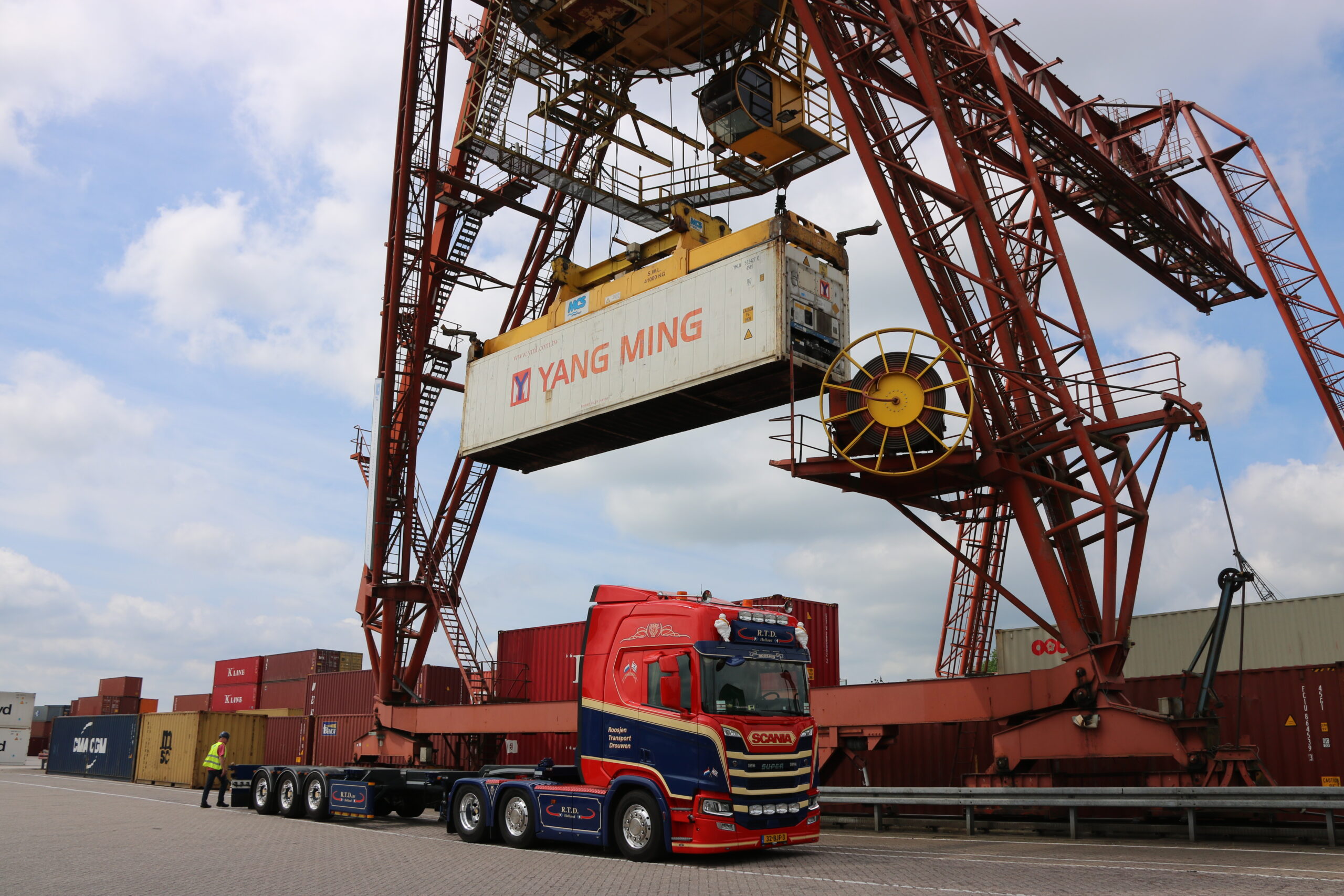 In Stroobos parkeert hij de container voor het dok. Geert doet de luchtvering wat omhoog en de 24 ton diepvriesvis is binnen een kwartier geladen. ,,Het zijn veelal vaste adressen waar wij komen’’, zegt hij. Hij verzegelt de container en tuft ermee naar Meppel, de terminal waar hij dagelijks een keer of vier komt. ,,Ik maak gemiddeld drie ritjes op een dag en leg zo dagelijks rond de 500 kilometer af.’’