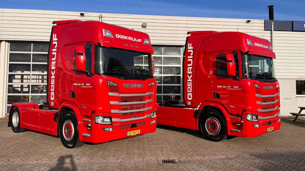 Transportbedrijf Gerrit de Kruijf B.V. uit Houten heeft twee nieuwe Scania 460R Super 4×2 trekkers in gebruik genomen. De voertuigen zijn uitgevoerd in de gunstige VECTO 3-klasse en zijn mede daarom aangeschaft. Met deze investering anticipeert het familiebedrijf op strengere CO2-eisen, de aankomende vrachtwagenheffing en toenemende duurzaamheidsvragen van opdrachtgevers. Tegelijkertijd is er veel aandacht besteed aan chauffeurscomfort, met voorzieningen als een standkachel, standairco, magnetron en omvormer.