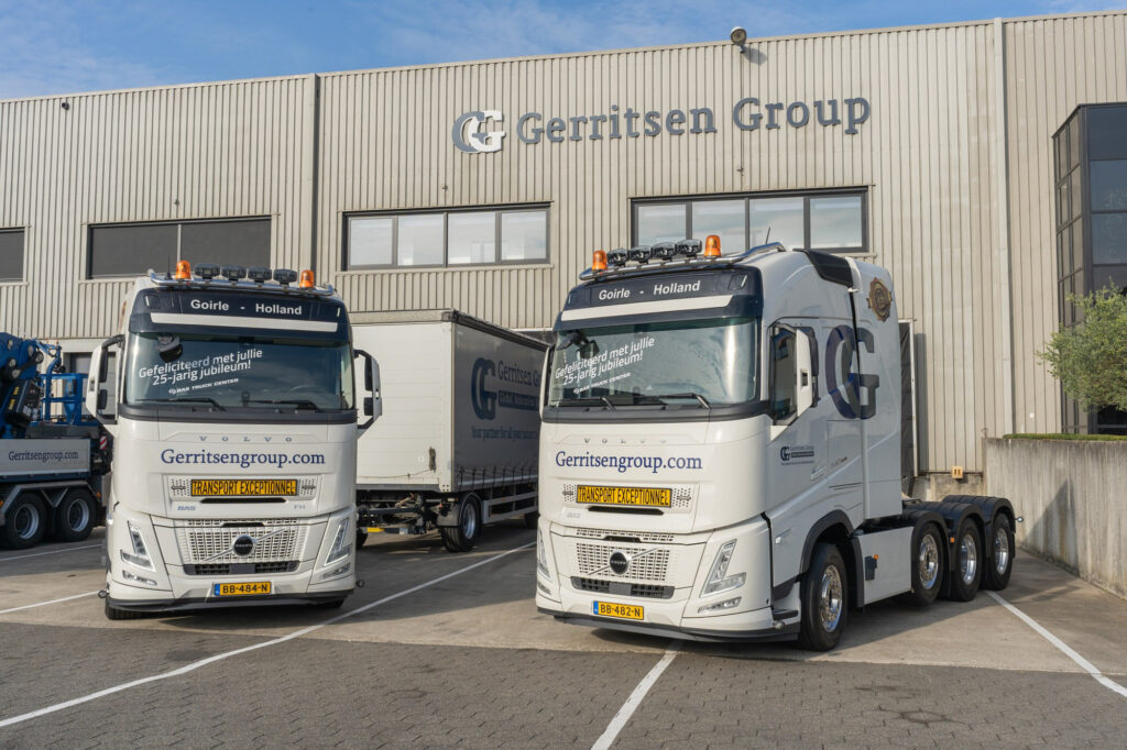 Een Volvo FH Aero als zwaartransporttrekker kom je nog niet vaak tegen. Gerritsen Group heeft de kans vergroot dat je er één tegenkomt, door er twee op kenteken te zetten. Tijdens de viering van hun 25-jarig jubileum werden deze Aero zwaartransporttrekkers gepresenteerd.