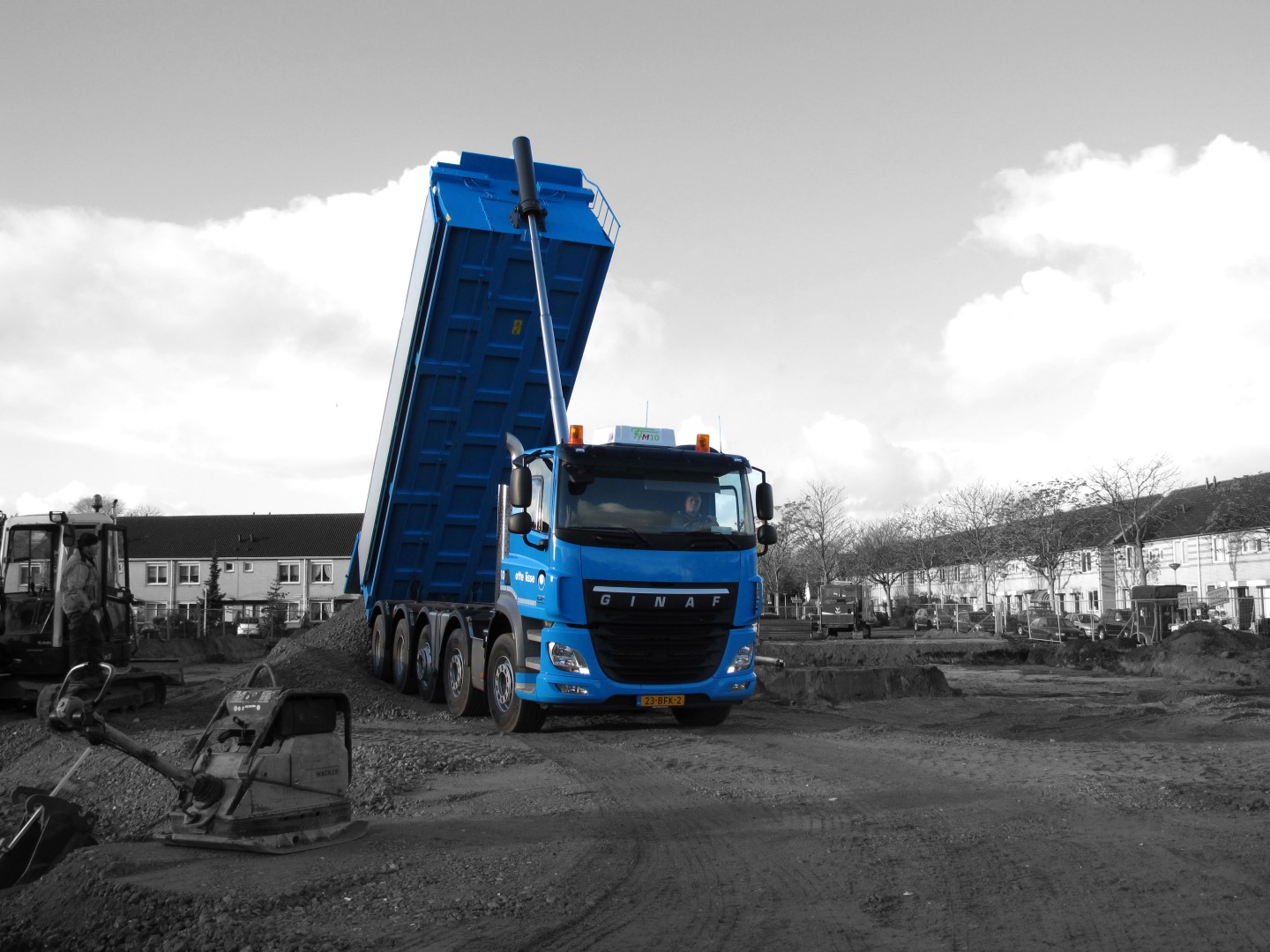 “Deze nieuwe GINAF geldt als vervanging van een bestaande truck. Wij zochten naar een merk dat ons het juiste Euro 6 voertuig kon leveren en kwamen zo bij Truckland en GINAF terecht. Met Truckland doen wij al langer zaken, van de zestien trucks die hier rijden, zijn er tien van het merk DAF.”, vertelt Tom Otte, directeur van het bedrijf. Hij vervolgt: ”Vroeger reed hier een GINAF kraanauto, dus ook het merk is voor ons niet vreemd. Nu hebben we gekozen voor een 10×4, een andere keuze dan de normale 10×8-en die bij ons rijden. Die keuze is gemaakt omdat er steeds meer kilometers gereden worden en omdat wij steeds minder in zware onverharde terreinen hoeven te rijden. Dan is een 10×4 een goede oplossing. Hij is qua aanschaf, maar ook qua rijden en onderhoud goedkoper. Verder hebben wij voor deze oplossing gekozen, omdat je met een trekker/trailer niet overal kunt komen. Door bij deze Ginaf te kiezen voor vier gestuurde assen voorkom je schade aan het wegdek en het voertuig is erg wendbaar. Daarbij zorgt de wide-spread samen met de toegevoegde middenas voor een juiste aslastverdeling.”