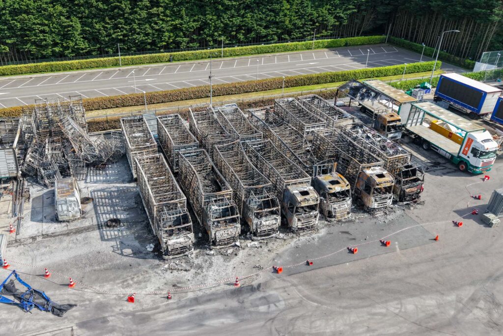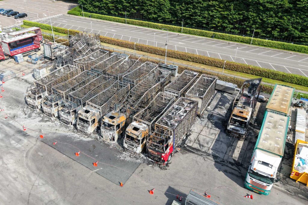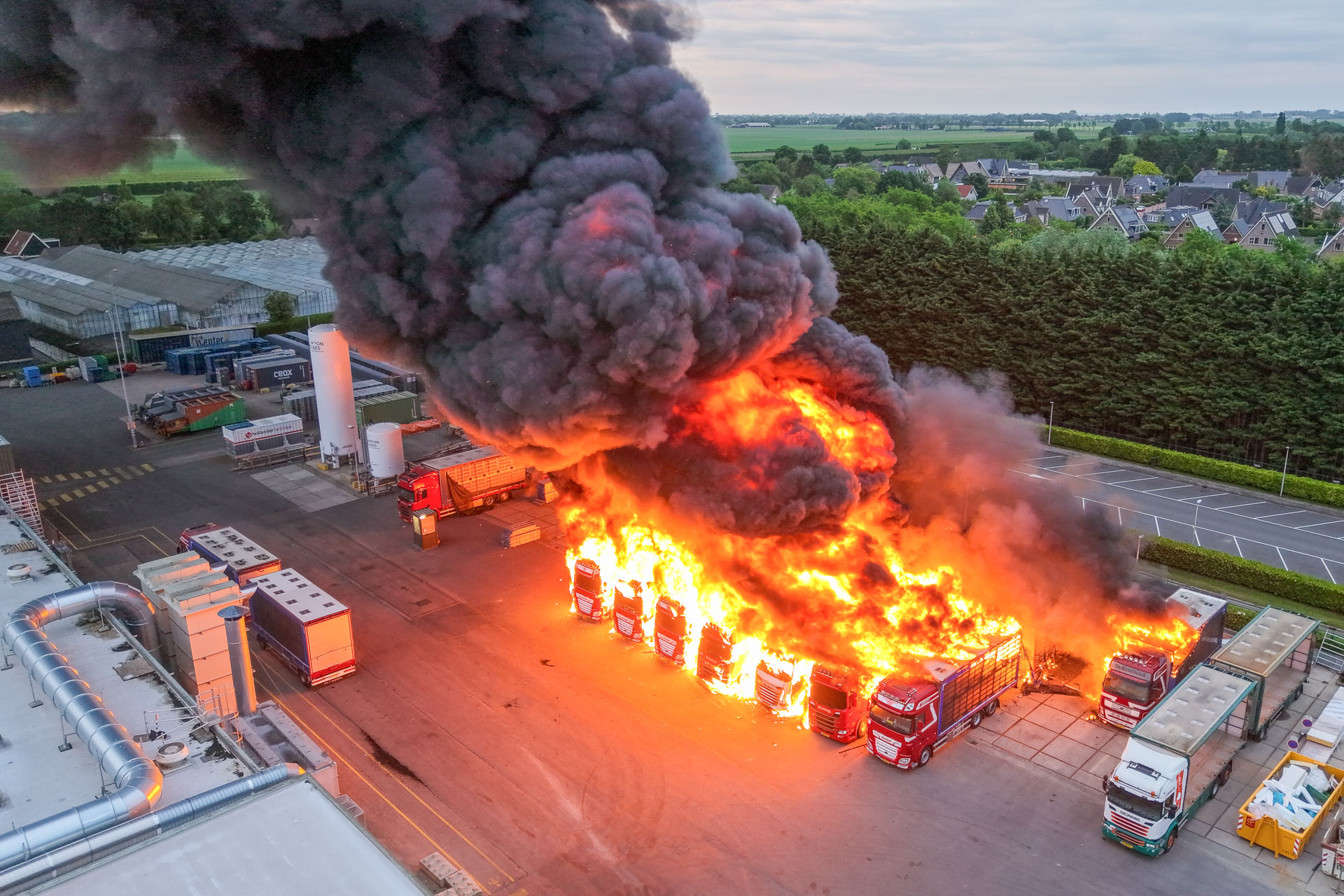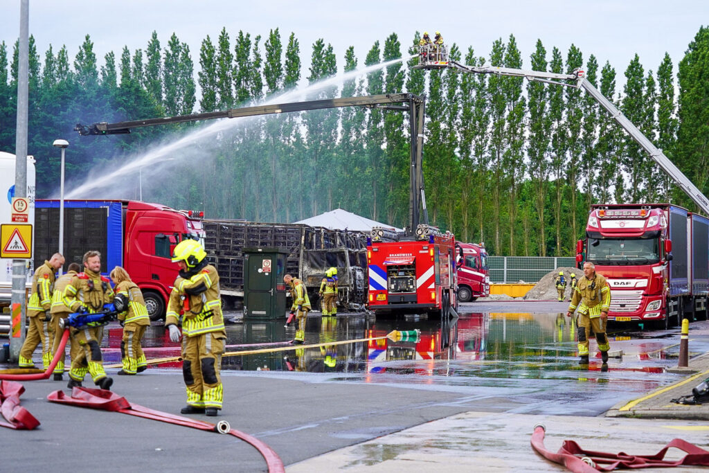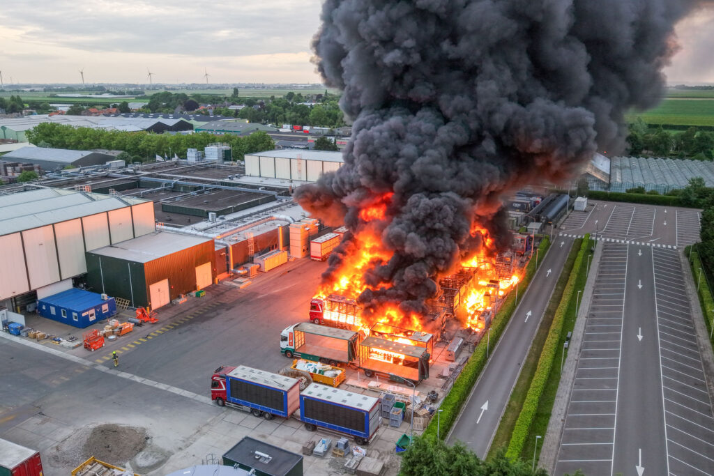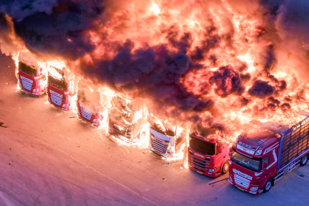 Vaderdag, 5:17 uur in de ochtend: ‘BZZZT BZZZT’. Huh? Vergeten mijn telefoon op stil te zetten zeker… Maar nee, mijn vriendin schudt me wakker: “Er is een grote brand, we moeten de ramen sluiten!” Terwijl ik het raam in de slaapkamer van mijn dochter aan het sluiten ben, zie ik de enorme rookwolken boven de huizen uitstijgen. Toen wist ik nog niet dat het om een stel brandende DAF’s, Scania’s en een Volvo ging.