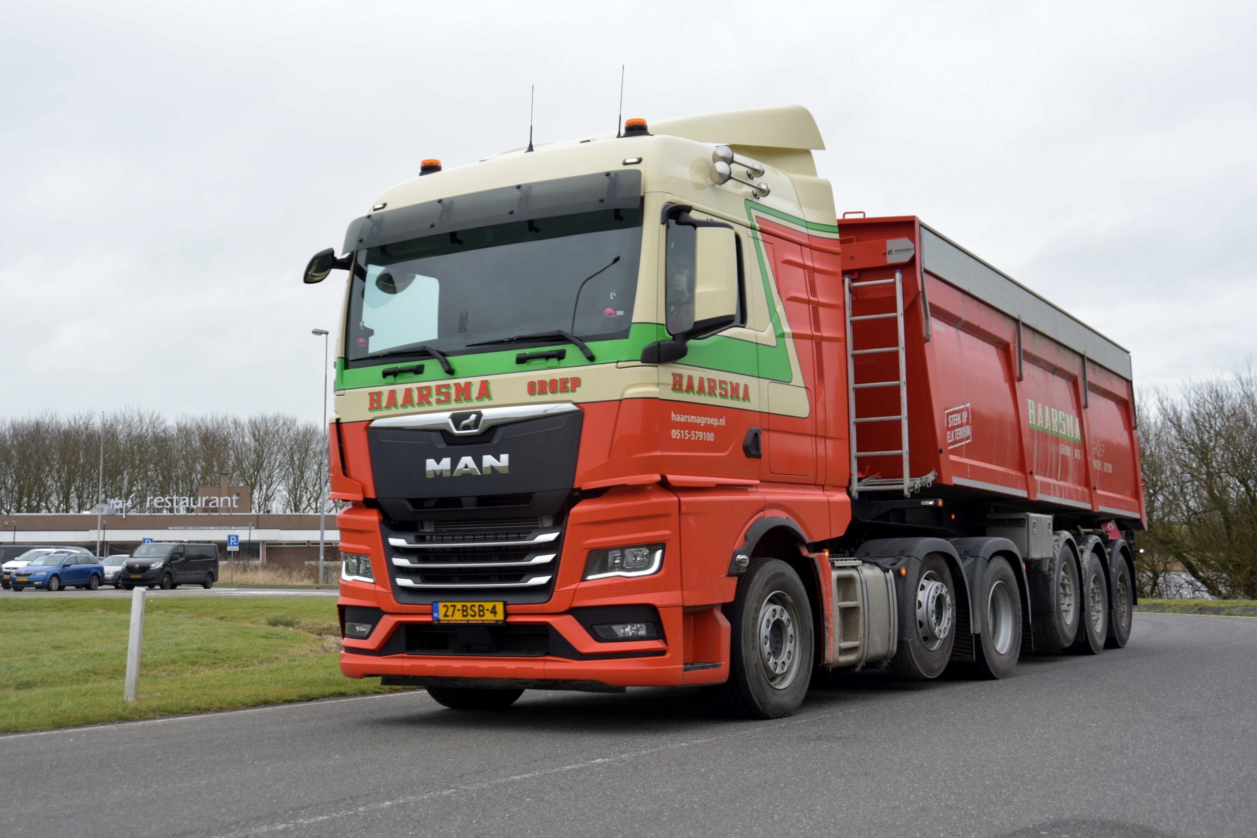 Haarsma Groep uit het Friese Tjerkwerd heeft een MAN TGX 26.470 6×2/4 BLS in gebruik genomen. De voorloopastrekker wordt ingezet in combinatie met een nieuwe Stas kipper-oplegger voor het vervoer van slib, zand en grind en andere grondstoffen voor de bouw en de wegenbouw.