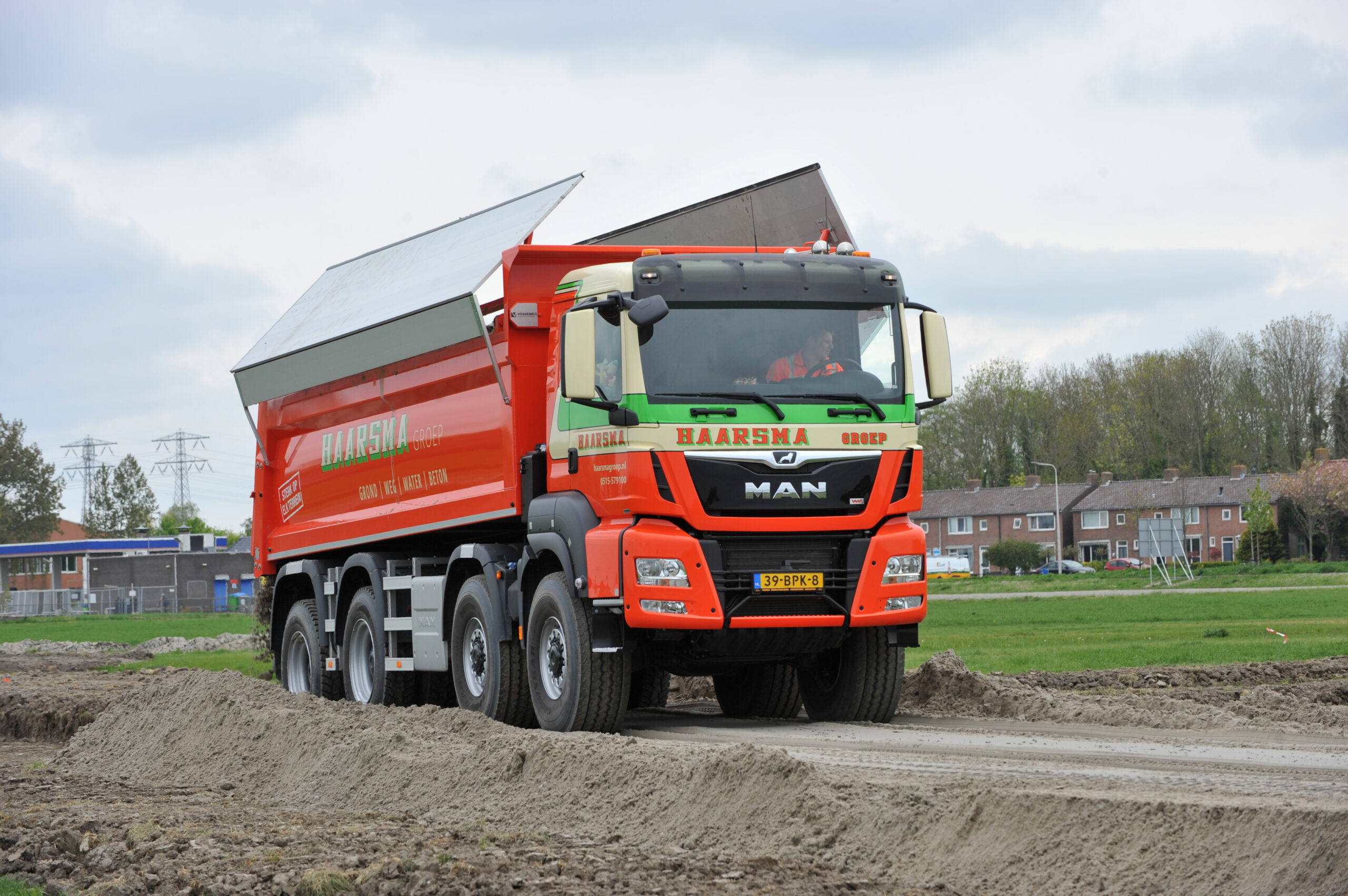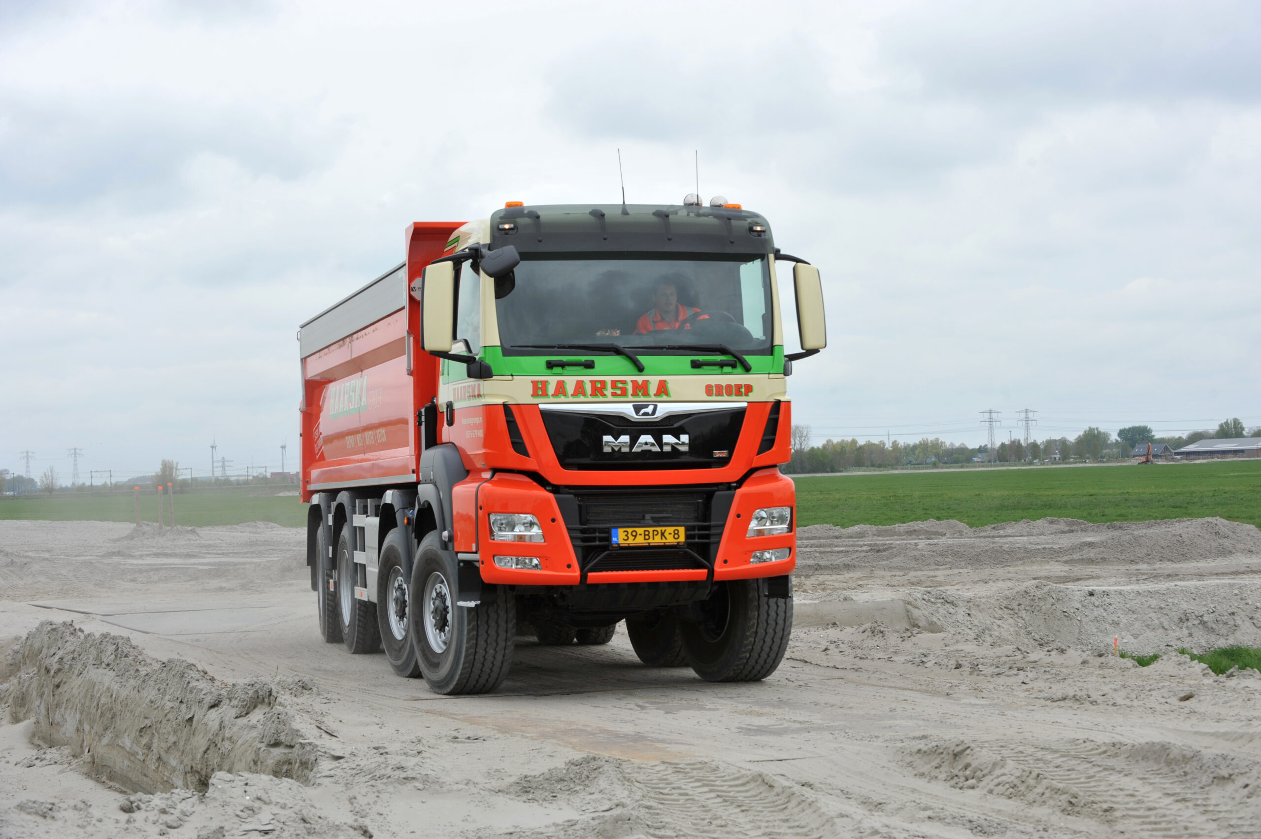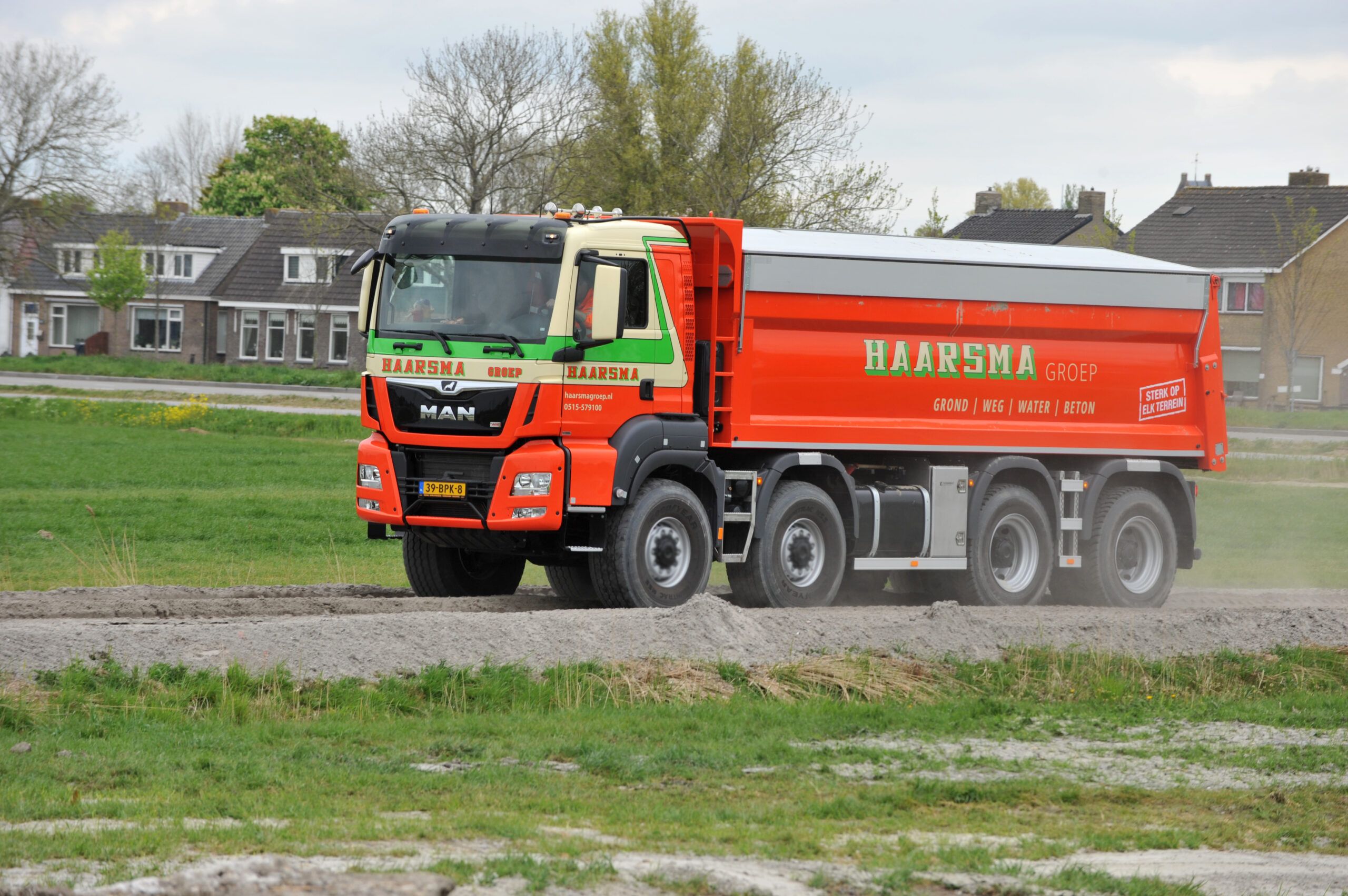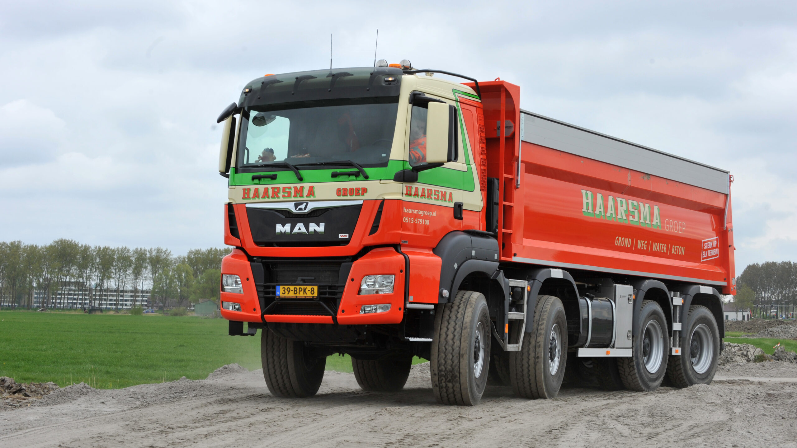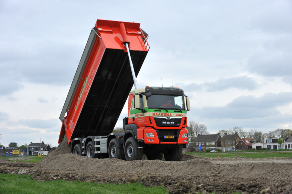 Haarsma uit het Friese Tjerkwerd heeft een nieuwe MAN TGS 46.470 8×8 WS kipper in gebruik genomen. De MAN is voorzien van een gestuurd WVT Wide-Spread tandemstel waardoor het voertuig bijzonder wendbaar is. Bovendien beschikt de kipper dankzij het hydraulische veersysteem over een hoge mate van comfort en een grote stabiliteit tijdens het kippen.