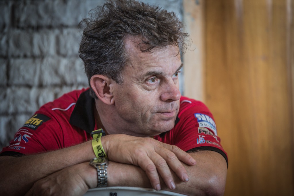Onderweg naar het volgende bivak kreeg Stacey telefoon van de organisatie dat hij alsnog mocht starten, maar pas een half uur na de laatste trucks en auto’s. “Maar dat was nog veel gevaarlijker. Die mensen die achteraan rijden verwachten niemand meer en zeker geen truck die met 120, 130 kilometer per uur aan komt denderen.” Op tv was te zien hoe bij Stacey het huilen nader stond dan het lachen en hoe hij schold op ‘die kutfransen’.