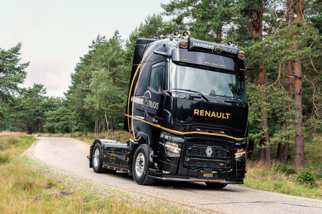 Het bijzondere design van de Volvo FH Aero 500 4×2-trekker en de Renault Trucks T High 480 4×2-trekker springt meteen in het oog. De trucks zijn gespoten in een speciaal voor de gelegenheid ontworpen kleurstelling, inclusief een verwijzing naar het 25-jarig bestaan van Harbers Trucks op de cabine.