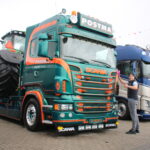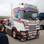 Even verderop zeemt Bart Rogaar de Scania van zijn maat Raymond van Houten. ,,Raymond is gisteren vader geworden en ik neem nu de zaak waar’’, lacht hij. Het is de derde keer dat Raymond’s Scania – een R500 van Postma uit Grijpskerk – in de Mooiste Truckstraat staat. De komst van dochter Robin was een grotere verrassing: zij is namelijk drie weken te vroeg geboren. Namens Truckstar: van harte!
