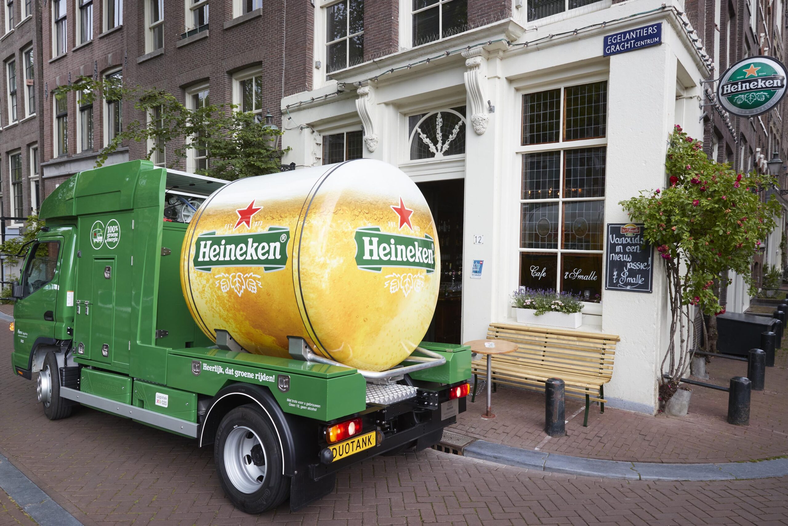 Als het aan de brouwer ligt zijn dieseldampen in het historische hart verleden tijd. “Heineken heeft een sterke groene ambitie en hierbij kijken we naar de hele keten. Dat gaat uiteraard ook over schoon transport. Ik ben blij dat we een duurzame manier hebben gevonden om een groot gewicht zoals tankbier te vervoeren”, aldus algemeen directeur Hans Böhm. En het gaat niet alleen om uitstoot en roetdeeltjes. Ook de decibellen worden flink teruggedrongen want de nieuwe elektrische truck is fluisterstil. “Deze nieuwe wijze van vervoeren komt de leefbaarheid voor iedereen die hier woont en werkt of de binnenstad bezoekt ten goede.”
