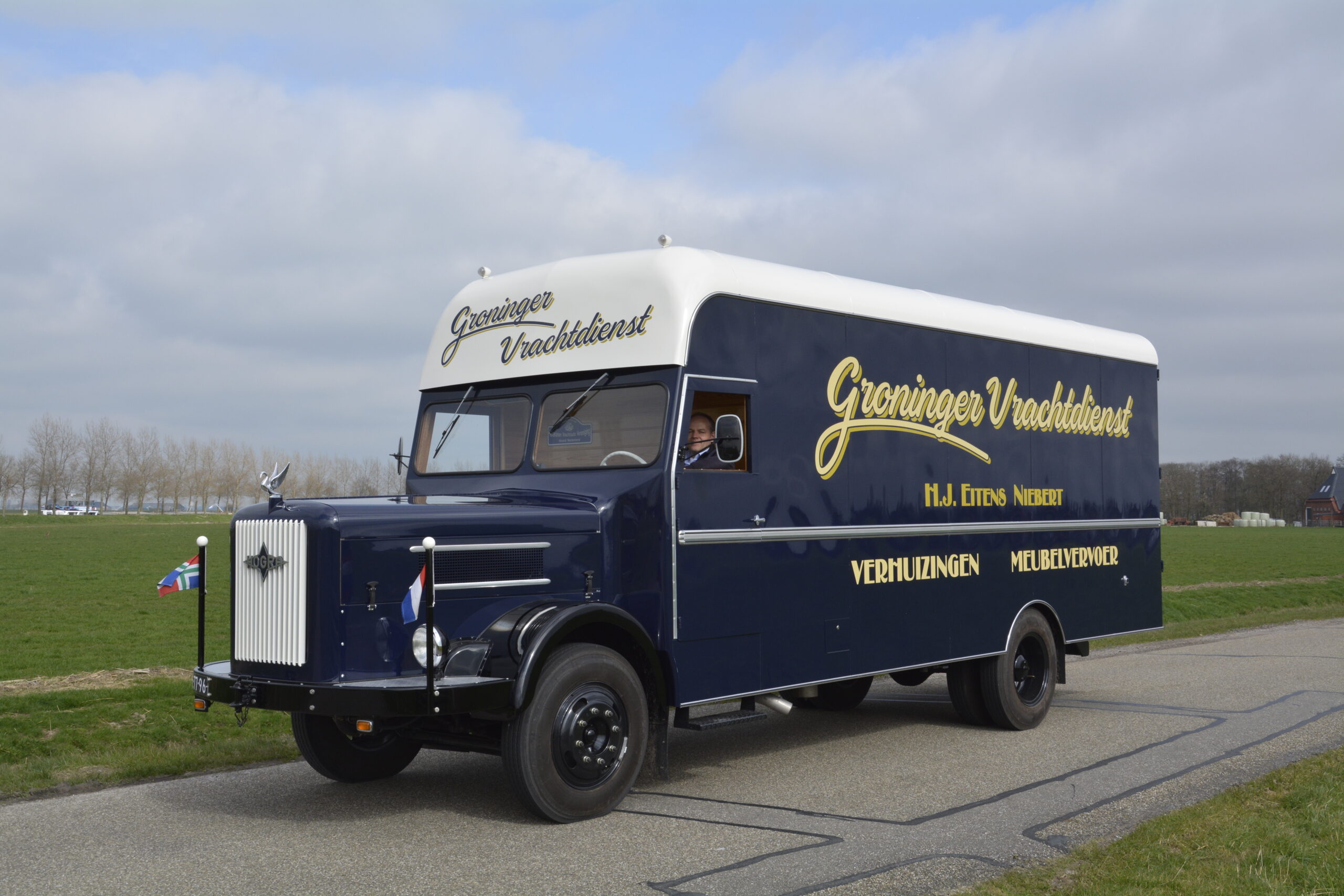 Harrie Eltens deed het toch, met een verbluffend eindresultaat. “Het chassis met schutbord en de neus had ik al. Oudere chauffeurs kennen Hogra nog wel, jongeren niet. Die vragen of het een Hongaars merk is.”