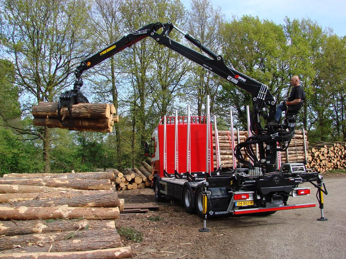 Houthandel Fransen BV koos voor een variant met enkele uitschuif, waarbij de gieklengte kan worden vergroot tot maximaal 8,3 meter. Eigenaar Anton Fransen: “Met de nieuwe giek kunnen we veertig centimeter aan ons bereik toevoegen. Daarmee wordt het laadproces een stuk eenvoudiger. Waar we vroeger de aanhangwagen onderuit moesten zetten om de afstand tussen de giek en de aanhanger te verkleinen, hebben we nu precies genoeg lengte om de boomstammen in één keer achter op de aanhanger weg te leggen. Daarnaast lopen de hydrauliekslangen naar de rotator en houtgrijper bij deze variant door de giek. Daardoor is het systeem beter beschermd en dus minder kwetsbaar en minder onderhoudsgevoelig.”