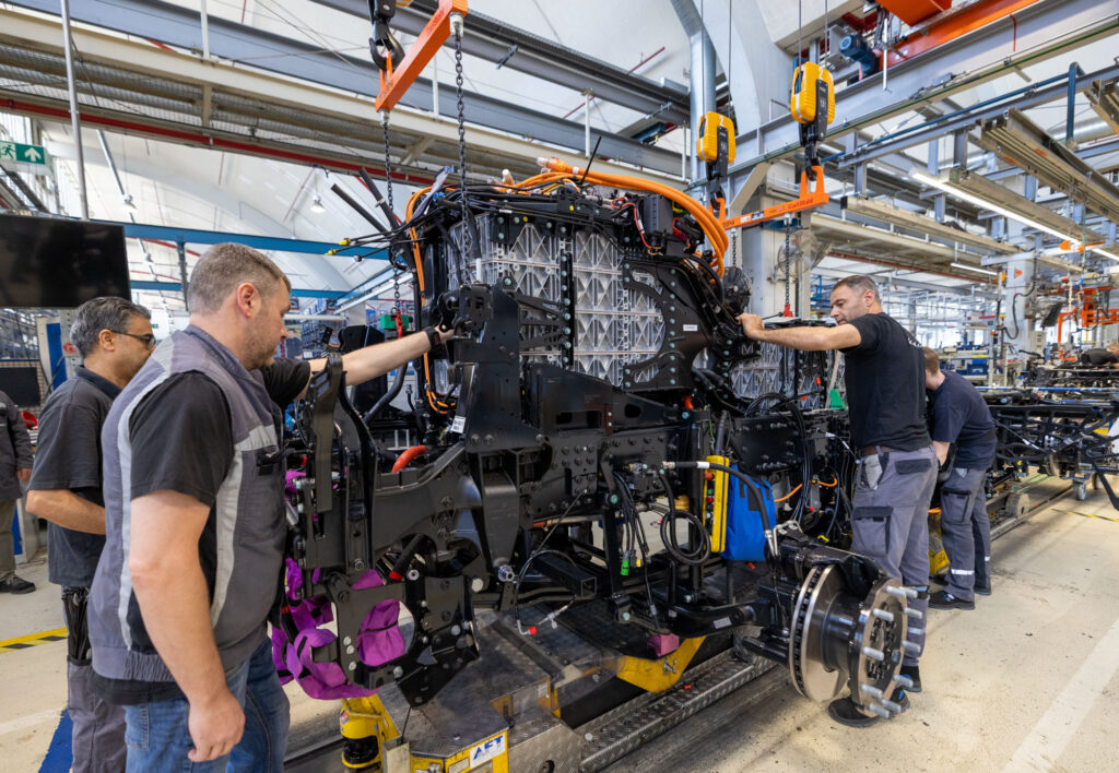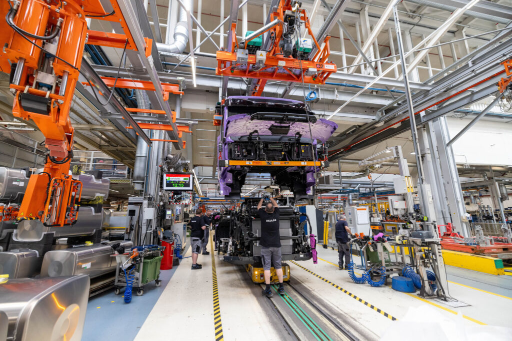 De transformatie is duidelijk zichtbaar in de hoofdfabriek van MAN. Waar trucks met verbrandingsmotoren bijvoorbeeld eerst worden uitgerust met assen, tanks en uitlaatsystemen, worden bij de e-modellen onder de cabine twee accu’s en andere elektrische componenten geplaatst, het zogenaamde powerpack. De maximale productiecapaciteit bedraagt momenteel ongeveer honderd trucks per dag, ongeacht het type aandrijflijn. De productie van een truck duurt ongeveer acht uur.