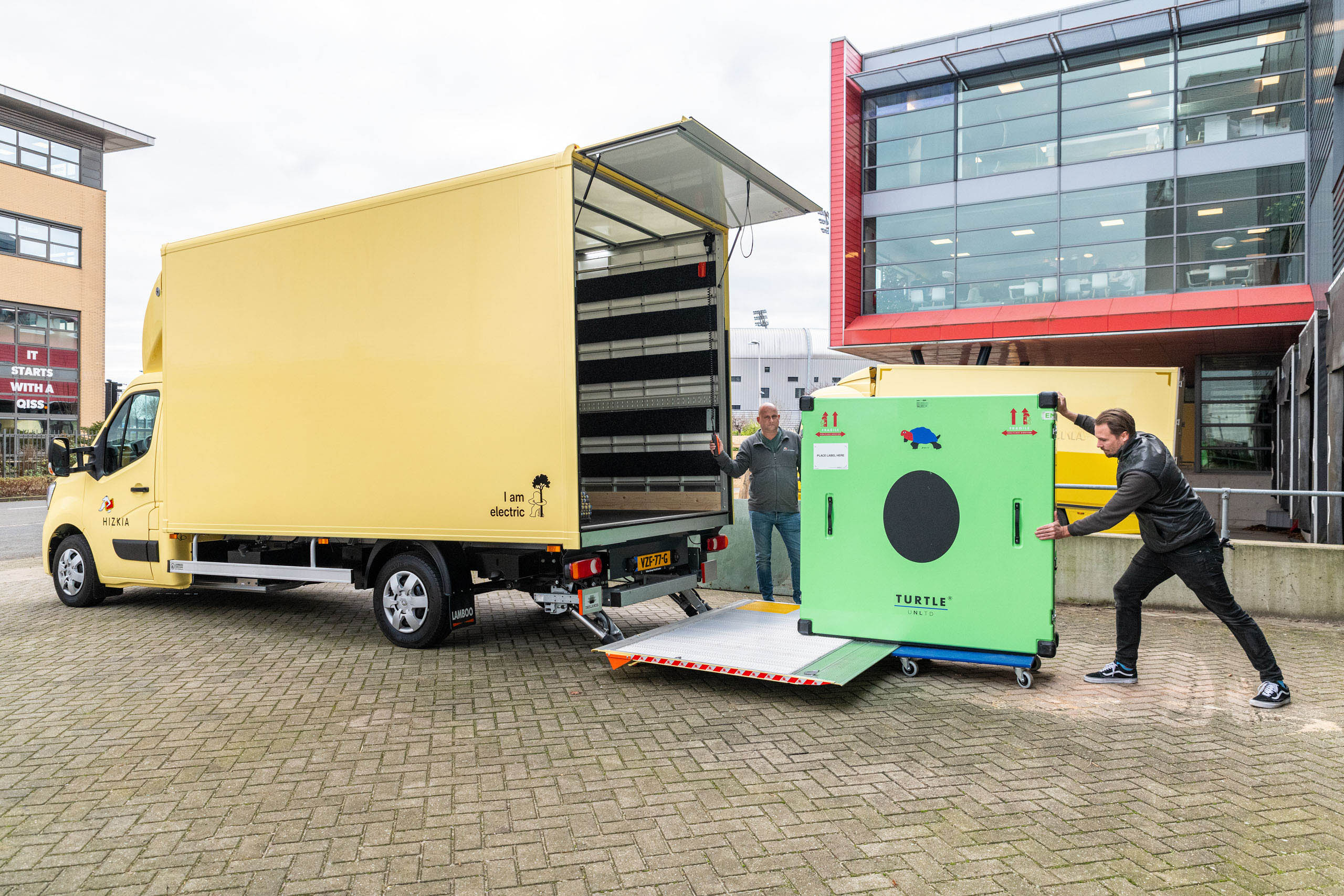 Met het eerste elektrische voertuig voor transport van kunst wil Hizkia vooral leren en ervaring opdoen. Koster: “Wat kunnen we in de praktijk met dit voertuig? Welke actieradius is realistisch? Hoe benut je als chauffeur de capaciteit van het voertuig optimaal? Juist voor inzet in de stad is een elektrisch voertuig ideaal. Als je op de juiste manier en op het juiste moment remt en het energiepedaal loslaat, kun je veel energie regenereren. Opladen kunnen we bij onze vestiging in Den Haag. We rijden al langer met elektrische personenwagens en hiervoor hebben we al een aantal laadpalen op ons terrein. Als we tijdens de werkdag extra capaciteit nodig hebben, kunnen we terecht bij een laadstation met een snellader.”