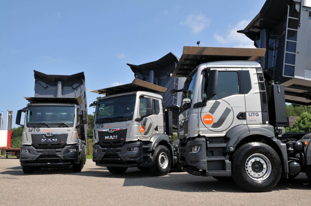 IJTG Logistics, ook bekend als IJmond Transport Groep, heeft de eerste drie MAN trucks van de nieuwe generatie als 10×4 in gebruik genomen. De indrukwekkende vijf-assers zijn voorzien van een 35 kuub grote Gijsbertsen kipperopbouw met milieukleppen en een afdekking boven de cabine.