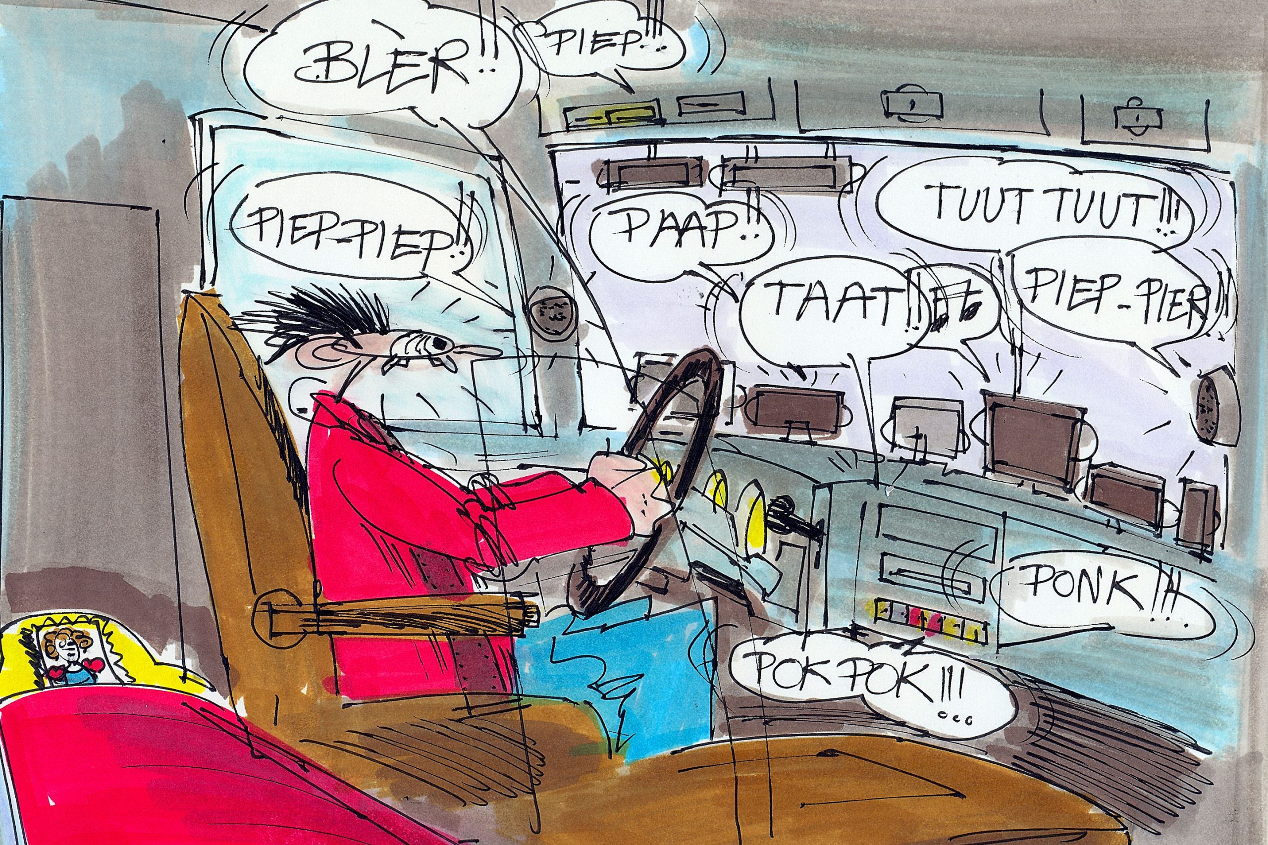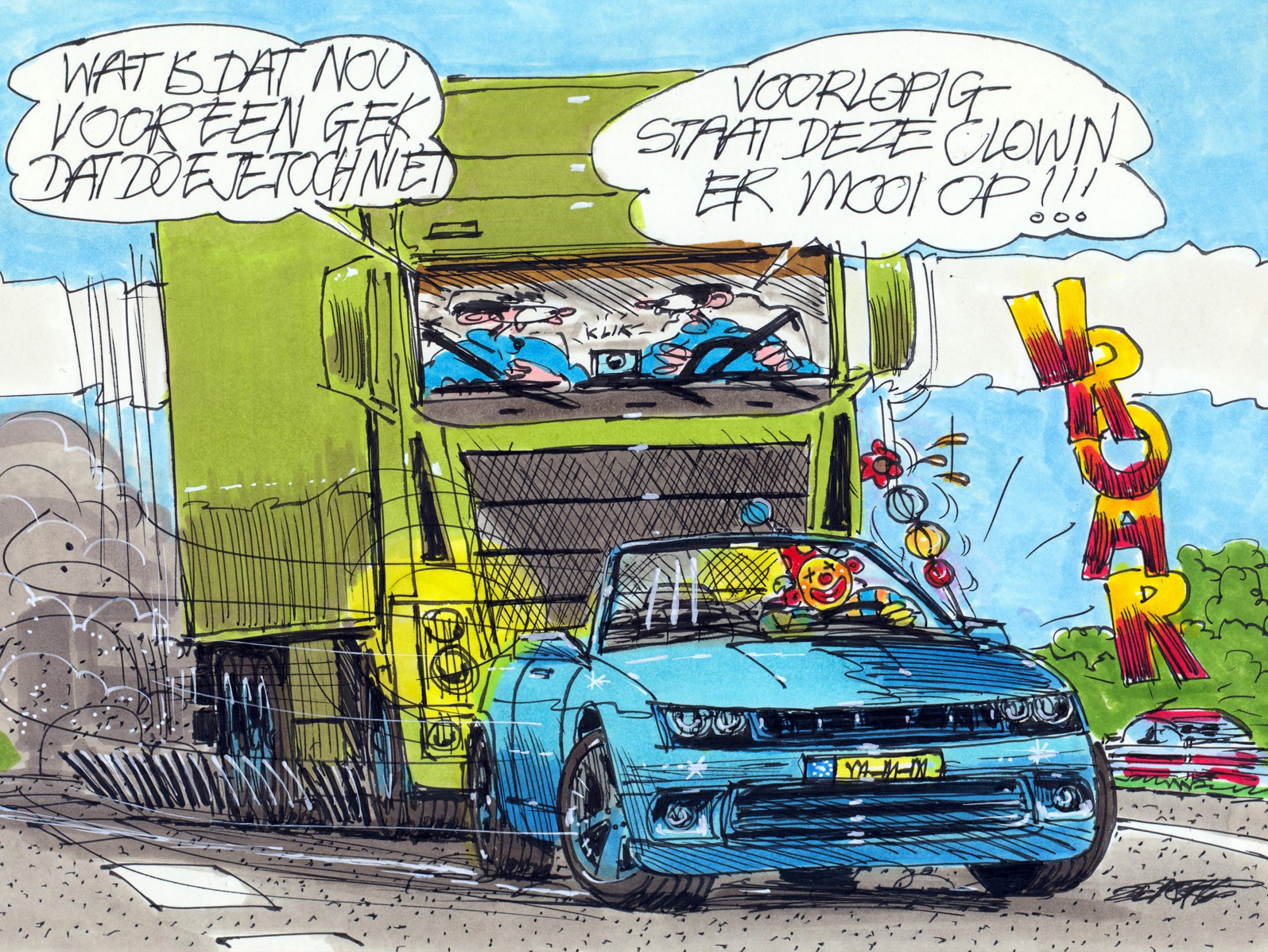 En inderdaad, de allereerste paginagrote cartoon van Peter Zadelaar verscheen in 1986. In Truckstar nummer 10, om precies te zijn. In de daaropvolgende editie kreeg het rijdende gilde in Peters fantasierijke tekening de naam Jan Rap & Zn. Sindsdien konden we eerst maandelijks en daarna vierwekelijks van Peters bijdragen genieten. Niet alleen in de vorm van Jan Rap, want ook de Stamtafel en de column van John van Tent werden door Peter geïllustreerd.