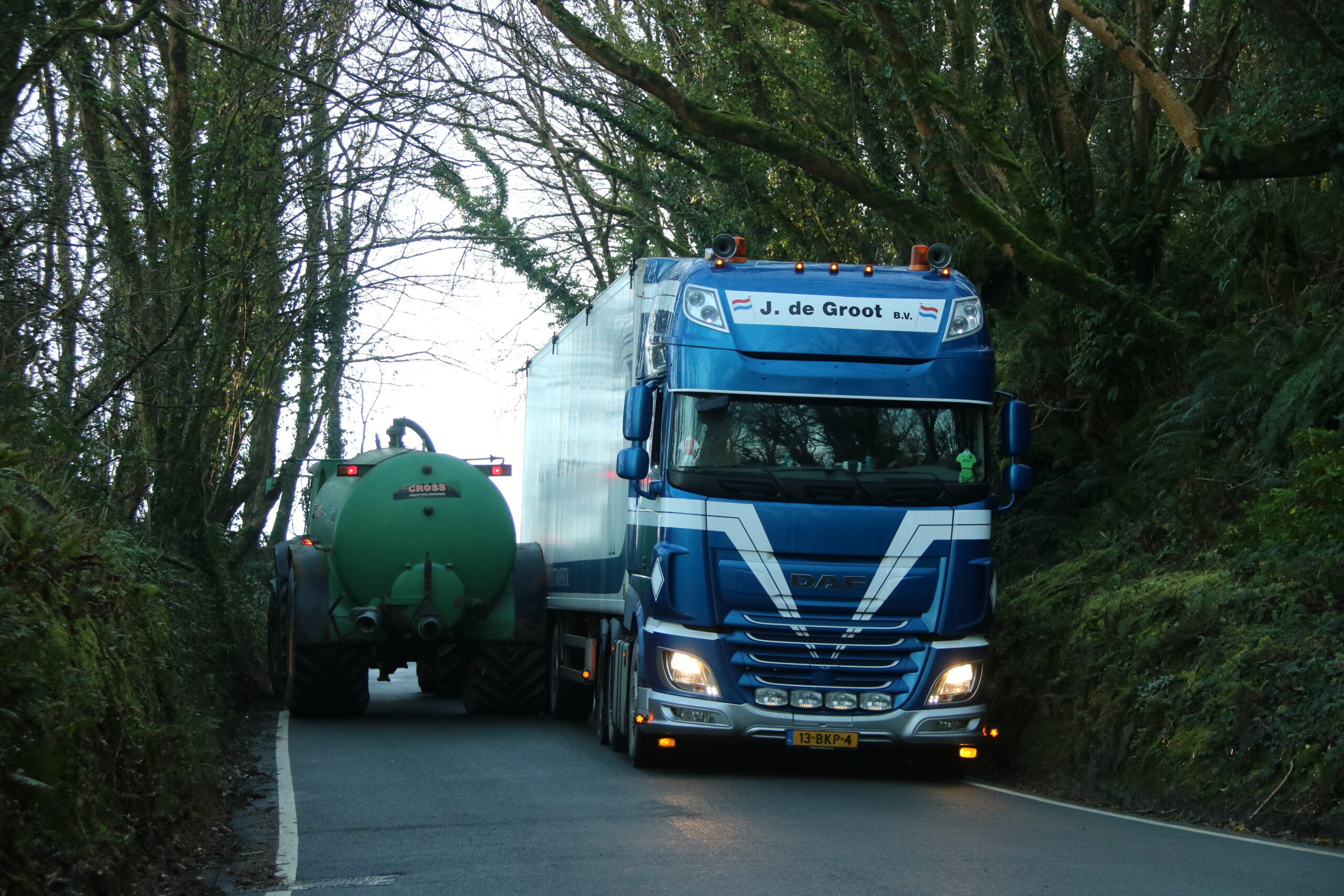 Drie chauffeurs van J. de Groot Transport brachten een vracht sojameel naar Ierland. Vooral de rit door Wales werd een belevenis.
