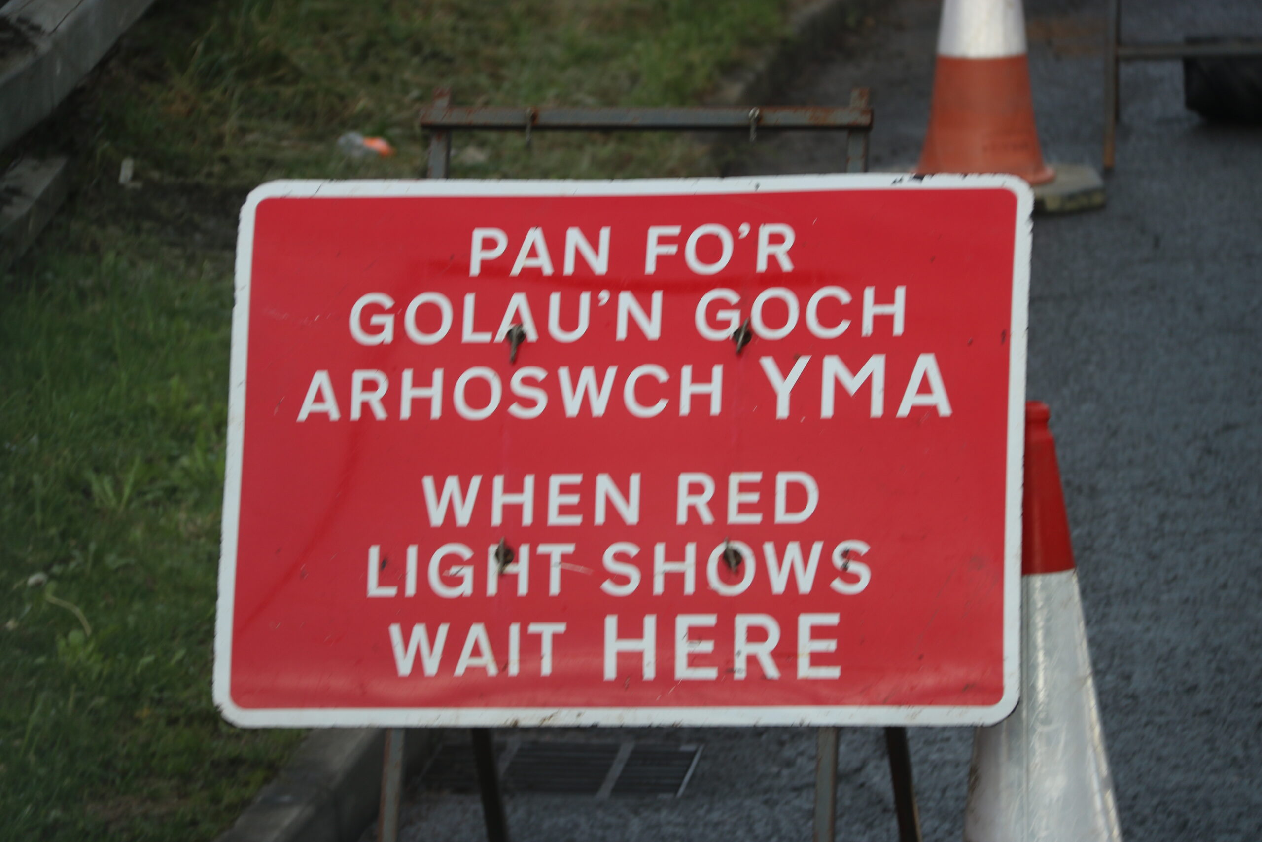 “Het lijkt wel een skischans”, zegt collega Edwin Spreeuw (49) vanuit zijn DAF over het bakkie tegen collega Alex (32), die voor hem rijdt. De skischans is een smerig heuveltje in de toch al veel te smalle, avontuurlijke B4313 in Wales. Het is eigenlijk geen geschikte weg voor vrachtwagens, constateren we. Alex had wel ergens een bord gezien maar wat dat daar precies op stond, had hij niet begrepen. Welsh is namelijk een Keltische taal en lijkt niet heel erg op Nederlands.