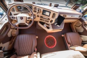 De Scania S650 V8 is zijn eerste echte nieuwe vrachtwagen. Daarbij heeft hij voor een perfecte afwerking gekozen, en bovendien rekening gehouden met de toekomst. “Voor dit werk zou een 4×2 al voldoende zijn, maar met een 6×2 met slaapcabine kan ik de trekker ook voor andere transporten inzetten – mocht dat aan de orde zijn.”