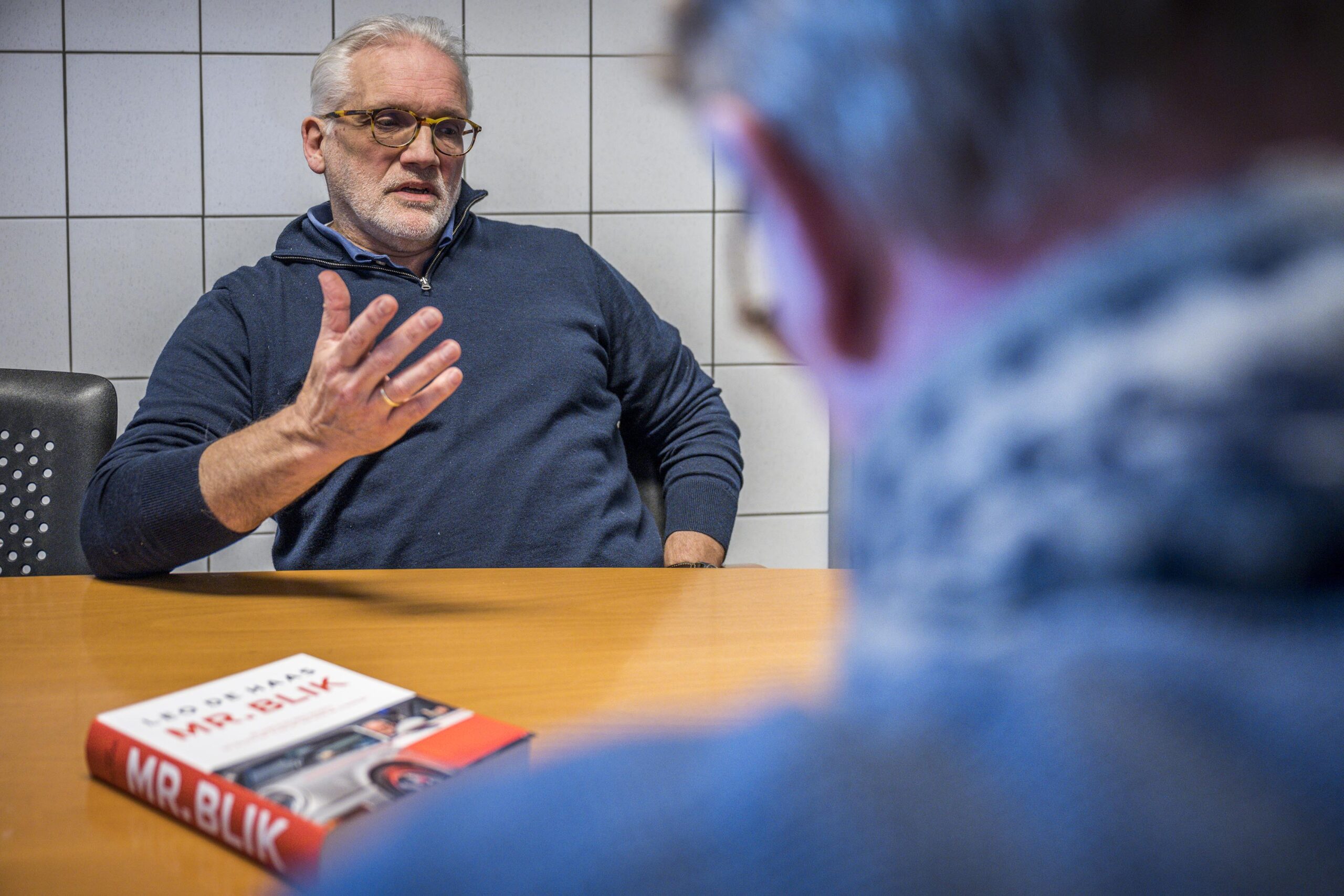 Het portier van de MAN-bergingstruck van Stouwdam zwaait open en met speels gemak klimt Leo de Haas (63) achter het stuur voor de foto. „Jongens, wat heb ik dit gemist”, zegt de voormalig presentator als hij met het stuur in de handen om zich heen kijkt. Sinds de publicatie van zijn biografie ‘Mr. Blik’ is duidelijk dat Leo niet alleen houdt van auto’s en motorfietsen, maar ook vrachtwagens een warm hart toedraagt. Die liefde is niet gespeeld, want zijn grote glimlach op de foto’s spreekt wat dat betreft boekdelen.