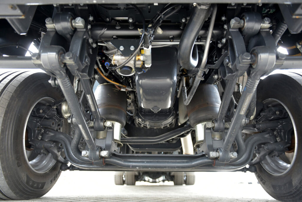 De Iveco is uitgerust met een wielbasis van 510 cm. Veldhuizen Trucks monteert vervolgens de sturende naloopas op 181 cm, waardoor het hoge laadvermogen gerealiseerd wordt. Daarvoor worden op de naloopas speciale banden van N-Tyre toegepast met de afmeting 375/45R22,5. Deze speciaal ontwikkelde ‘Low Carrier’ banden hebben een load index van 164, wat betekent dat ze vijf ton draagvermogen hebben. Hierdoor is de naloopas met de extra lage banden toch geschikt voor 10 ton op kenteken, en dat is uniek.