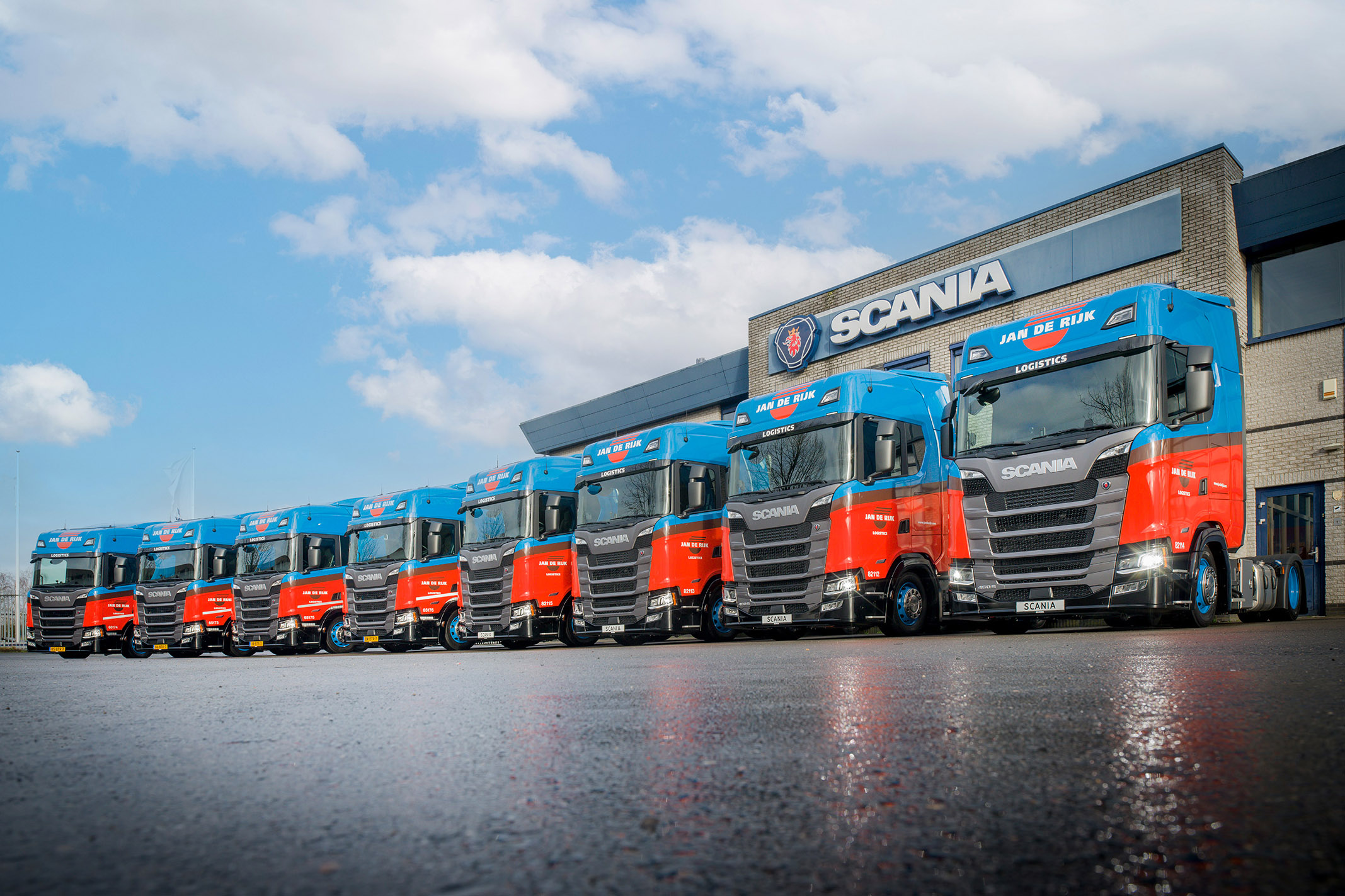 Jan de Rijk Logistics heeft acht lage Scania trekkers in gebruik genomen. Het betreft 4×2 trekkers, vier S- en vier R-cabines. De trekkers zijn uitgerust met de Super 13-liter motor met 460 pk. “Met deze order zetten we onze strategische pijler ‘sustainability’ extra kracht bij,” verklaart Daniel Uijtdewillegen, international transport director.