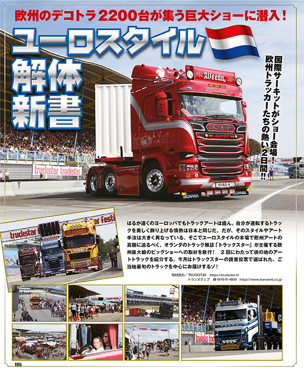 In het nieuwste nummer van Camion wordt uitgebreid verslag gedaan van het Festival en staan honderden foto’s van de Nederlandse trucks. De Japanners hebben respect voor de kwaliteit van de opbouw en van het spuitwerk. Dat er heel veel geld in de aankleding van trucks wordt geïnvesteerd, is de Japanners niet vreemd: ook Japanse chauffeurs besteden soms kapitalen aan de verbouwing van hun truck. Het resultaat is een truck die zo boordevol verchroomde accessoires is gehangen dat een normaal gebruik nauwelijks meer mogelijk lijkt.