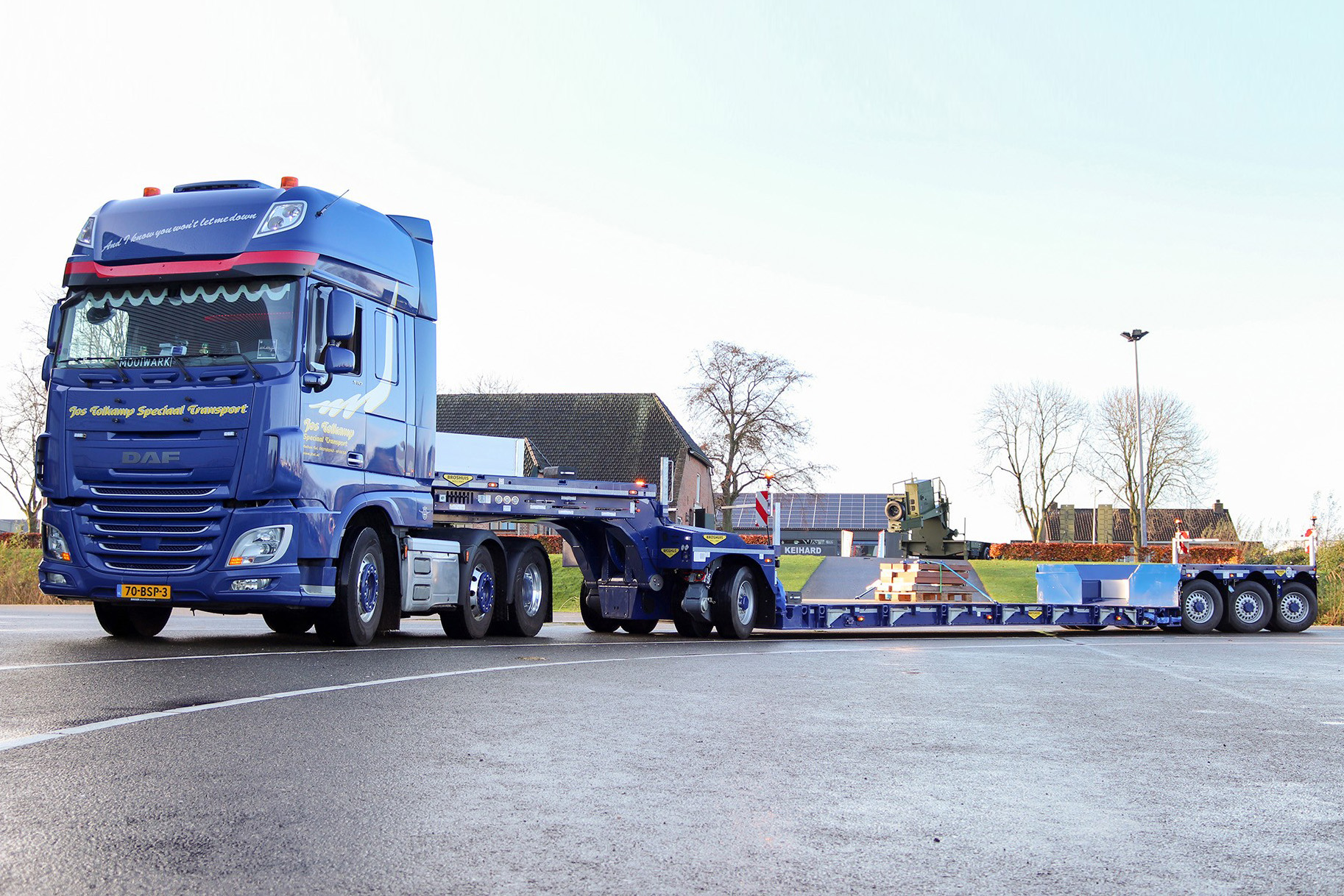 Jos Tolkamp Speciaal Transport heeft onlangs een nieuwe Broshuis 1+3 pendelas dieplader in gebruik genomen. Deze dieplader is voor hen de tweede nieuwe Broshuis trailer dit jaar. Naast eerder een gestuurde 3-assige semi-dieplader aangeschaft te hebben, is het nu de beurt aan een nieuwe pendelas dieplader.