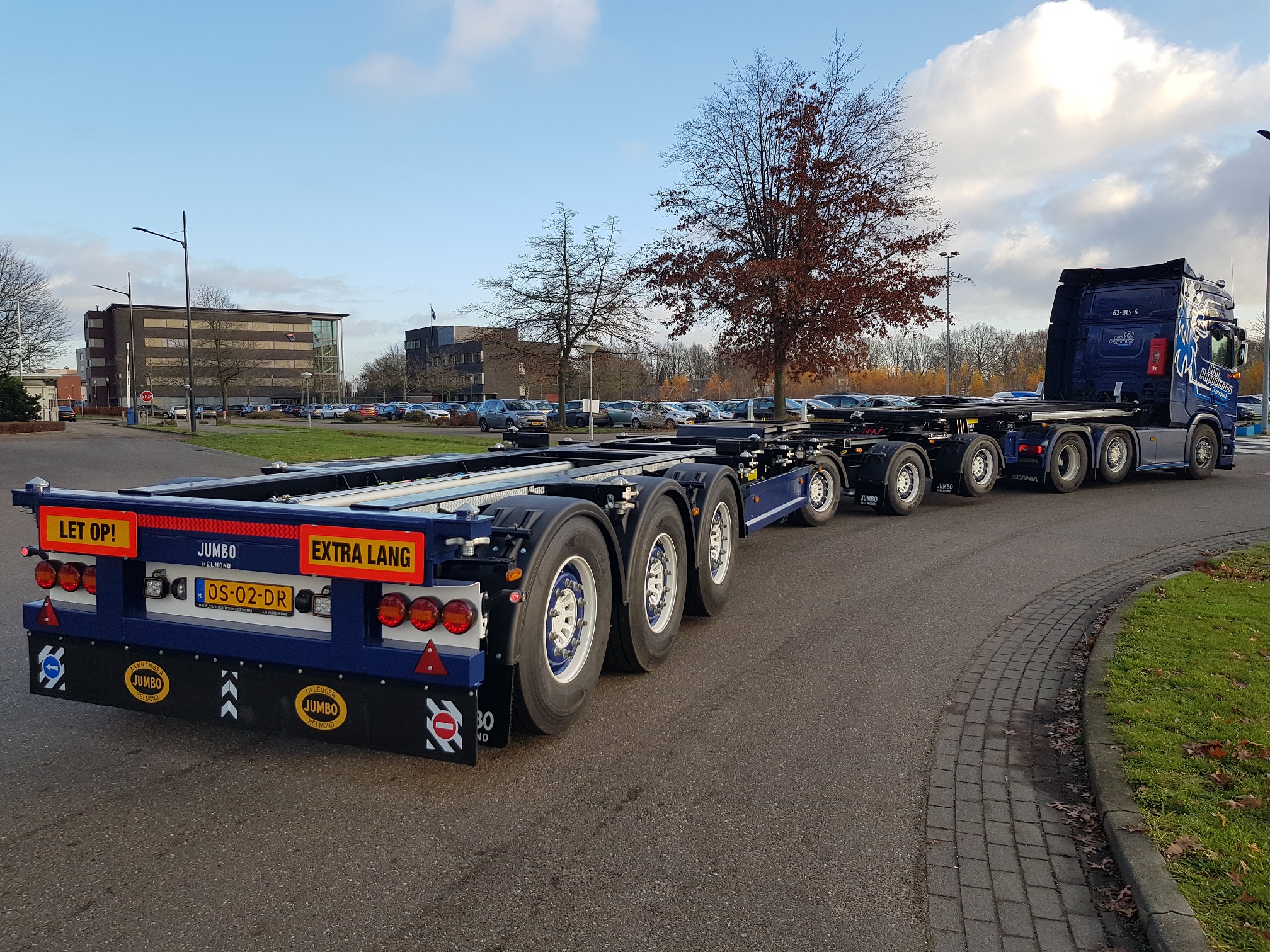 De afgelopen weken zijn vanuit de innovatieve Automotive Campus in Helmond de eerste Jumbo Groenewegen container LZV voorstukken afgeleverd die voldoen aan de Duitse LZV-eisen. Ron Poppelaars Transport, Barge Terminal Tilburg en Jan van der Meer Transport zijn de trotse bezitters van deze multi-inzetbare voertuigen.