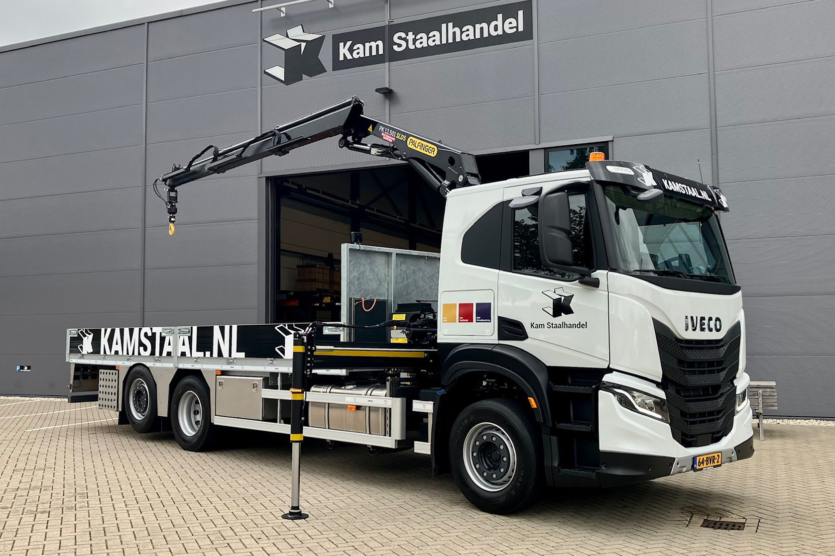De X-Way is door Dubbeldam voorzien van een open laadbak en beschikt over de optimale draagkracht en puntbelasting, waardoor het voertuig uitermate geschikt is voor het werken met een kraan. Deze kraan, van het merk Palfinger, is voor Kam Staalhandel onmisbaar en vakkundig opgebouwd door de firma Ruizeveld in ’s Gravendeel. Door de gezamenlijke inspanningen van Iveco, Ruizeveld en Dubbeldam, is het voertuig nu perfect uitgerust voor de door Kam uit te voeren missies.