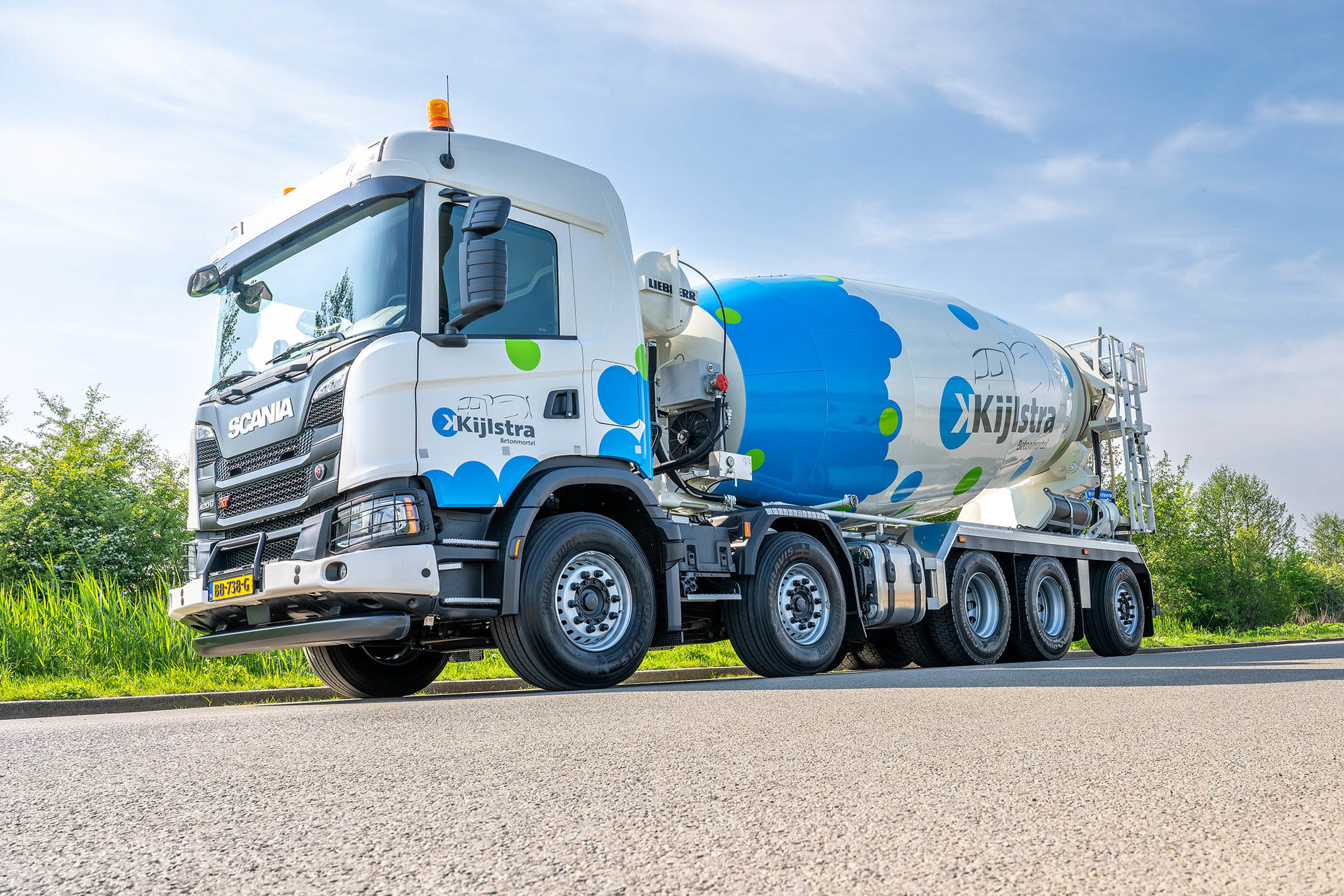 Kijlstra Betonmortel heeft als eerste in Nederland een af fabriek geleverde Scania vijfasser met Wide Spread Triple asconfiguratie in gebruik genomen. Het betreft een unieke fabrieksoplossing waarbij het chassis voorzien is van een Wide Spread Triple stel, goed voor een toegestaan totaalgewicht van 49 ton. Deze uitbreiding betekent voor Kijlstra een substantiële verhoging van de laadcapaciteit en daarmee een efficiëntere inzet in de betonlogistiek.