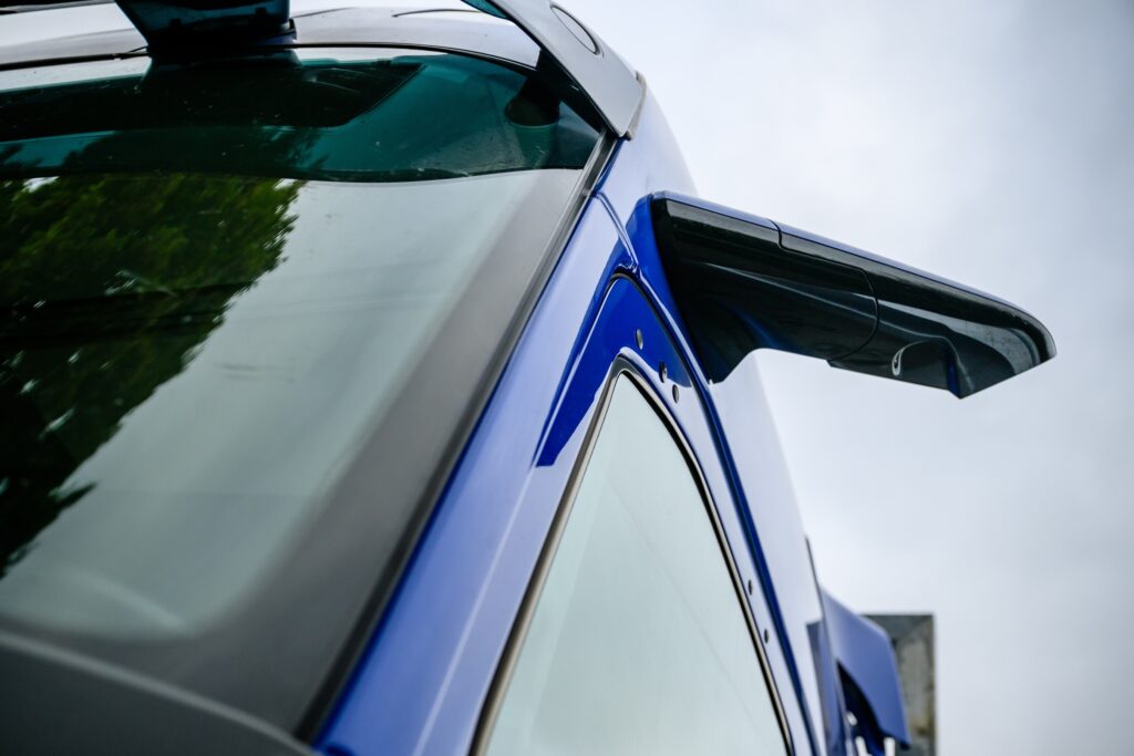 De echte test? Die zit natuurlijk bij de mensen die er dagelijks mee rijden. De chauffeurs van Kingspan Unidek kregen vanuit de afdeling Driver Development van BAS Truck Center een professionele voertuigoverdracht en praktische instructies over hun voertuigen. Ze zijn uitgesproken positief over hun nieuwe werkpaarden: “Een dikke 10! Alles zit erop en eraan, hij schakelt super en zit goed,” klinkt het enthousiast. Op de vraag hoe ze de trucks in één woord zouden omschrijven, variëren de antwoorden van “Donders” tot “Prima deluxe” en “Fijn”. Eén chauffeur noemde hem zelfs “2025”, klaar voor de toekomst dus!