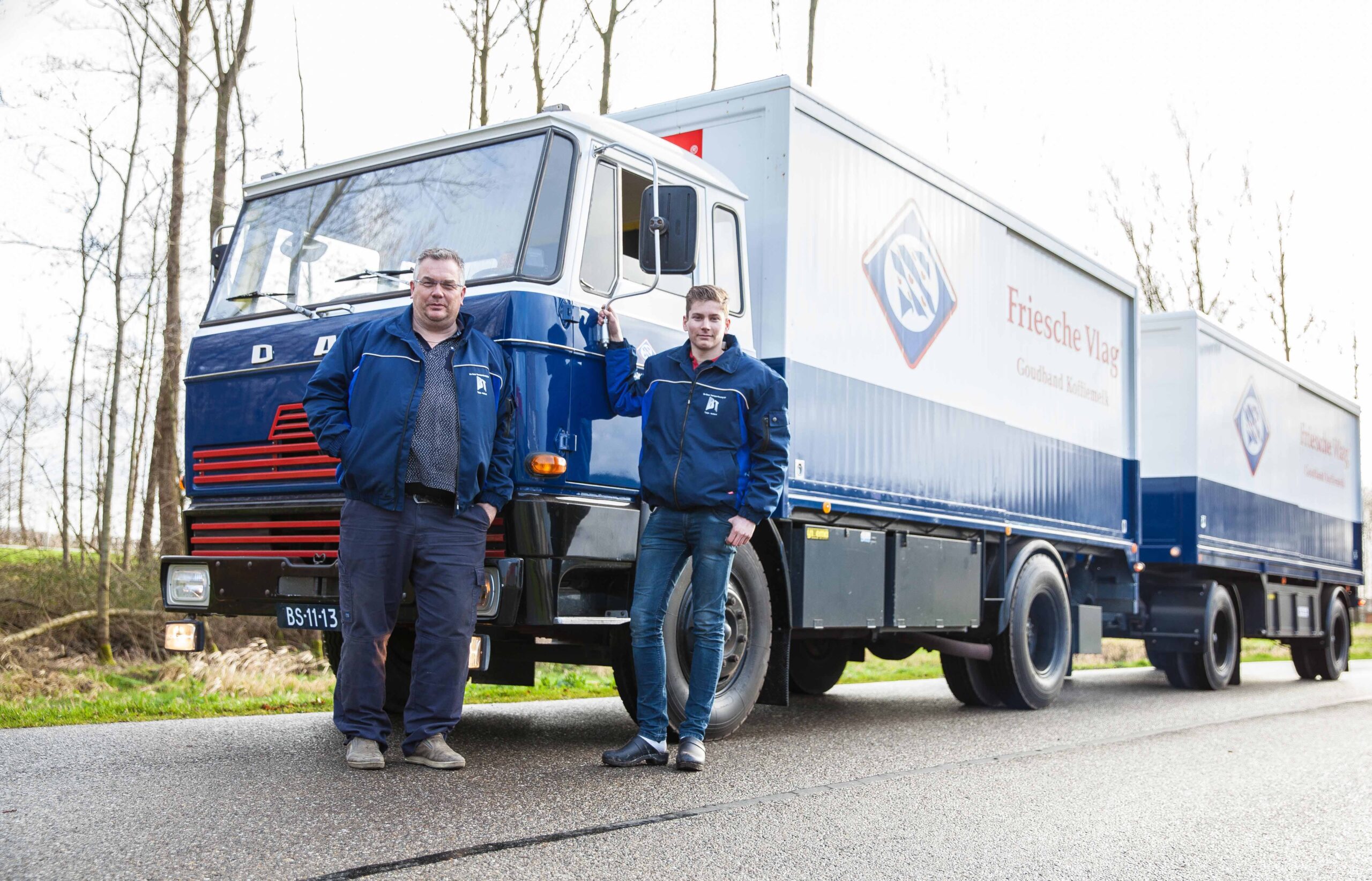Eigenaar Douwe Jan de Boer (51) van De Boer Transport uit het Friese Tijnje is lang op zoek geweest naar een oude DAF vrachtwagen. Hij zocht eigenlijk naar een DAF 2800 SpaceCab toen hij deze 1600 op internet tegenkwam. “Als jonge jongen ging ik wel eens met mijn vader mee op de vrachtwagen en dan kwamen we vaak bij de zuivelfabriek in Leeuwarden: de Coöperatieve Condensfabriek Friesland. Mijn vader had een tankwagen en reed melk. Op de fabriek zag ik andere vrachtwagens en dat vond ik geweldig. Wat een mooie auto’s. Ik kende alleen de tankwagen van mijn vader. Ik denk dat daar de interesse is ontstaan. Deze DAF is dezelfde vrachtwagen die ik als klein jongetje bij de zuivelfabriek zag. Puur jeugdsentiment!”