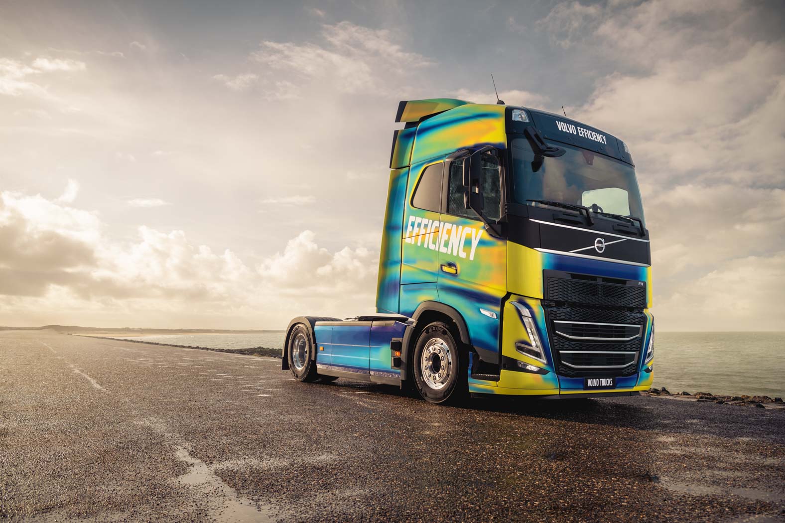 Alle opties en functies die bijdragen aan brandstofefficiency komen samen in de Volvo FH Efficiency demotruck. Naast de aandrijflijn is aerodynamica een van de belangrijkste aandachtspunten van Volvo Trucks. De luchtweerstand heeft, vooral bij snelheden boven de 50 km/u, een grote invloed op de brandstofefficiëntie van een truck. Sterker, de luchtweerstand kan verantwoordelijk zijn voor wel een derde van het brandstofverlies. Met de juiste aerodynamische opties kan tot 10% brandstof worden bespaard.