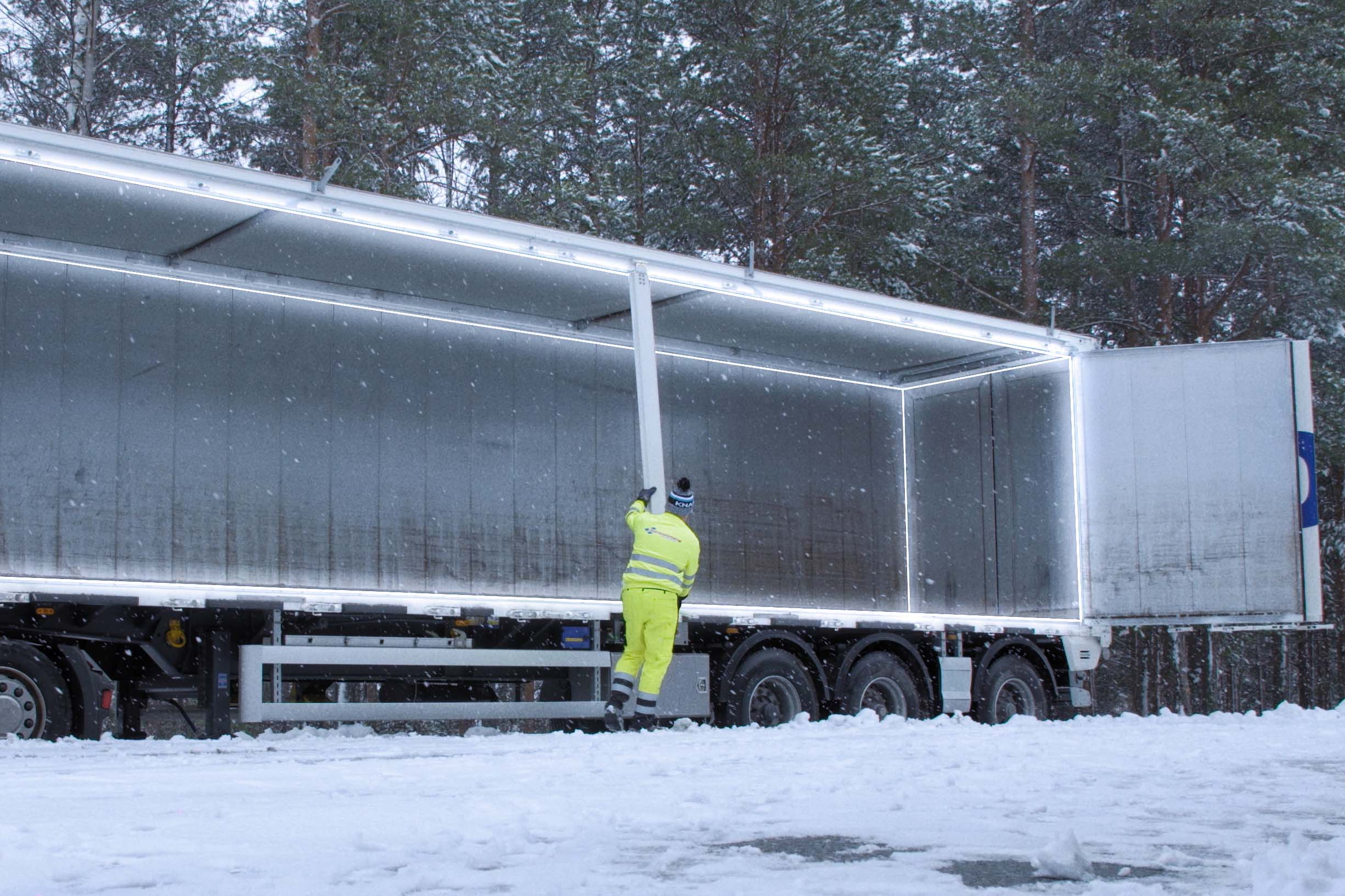 Een schuifvloertrailer heeft geen luxeleventje, daarom nemen ze alleen genoegen met volledige wintertesten. De Exside is met zijn verschillende uitvoeringen uitvoerig getest, allemaal met een veelvoud van verschillende bulk- en stukgoedladingen. Scandinavië biedt lange en strenge winters, maar ook grote afstanden, veel krappe haarspeldbochten en hoge toegestane gewichten. Kortom: de ideale plek om goed te onderzoeken of de nieuwe oplegger de praktijktest kan doorstaan moeten ze bij Knapen hebben gedacht.