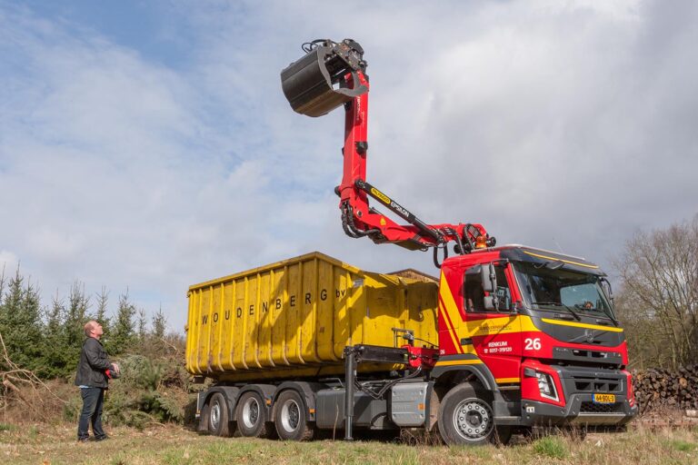 “Om het laadvermogen zo goed mogelijk te benutten in combinatie met een korte draaicirkel, is de keuze gevallen op een Volvo FMX 460 8×4 tridem chassis met een 10 tons vooras en een gestuurde en liftbare naloopas. Dit blijkt voor ons werk de ideale truck”, vertelt Coen van Woudenberg, directeur van Woudenberg B.V.