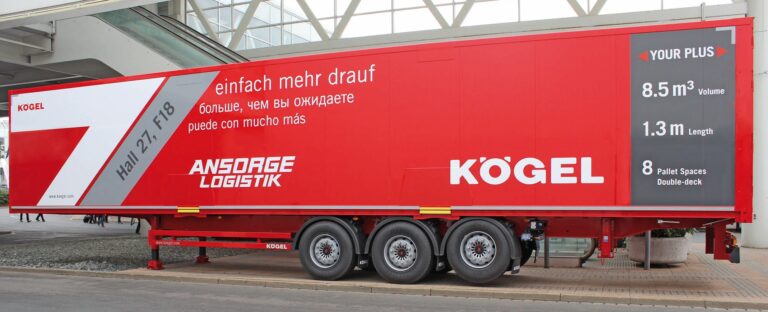 De langere oplegger zou namelijk een beter alternatief voor efficiënter transport kunnen zijn dan de LZV van 25,25 meter, zo betuigt men. En daar lijkt Brussel gevoelig voor. Maar is dat wel zo, en hoe handig is deze oplegger eigenlijk met z’n enorme achteroverbouw? Truckstar stelde Kögel enkele vragen, en kreeg antwoord.