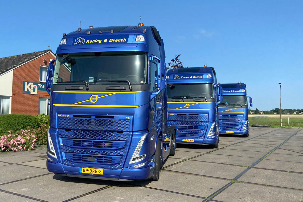 Koning & Drenth heeft drie nieuwe Volvo FH460 6×2 Turbo Compound trekkers in gebruik genomen. De trucks zijn voorzien van een groot aantal opties en uitgevoerd in de huisstijl van de internationale tak van de K&DTC groep.