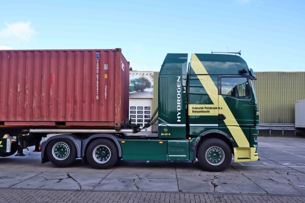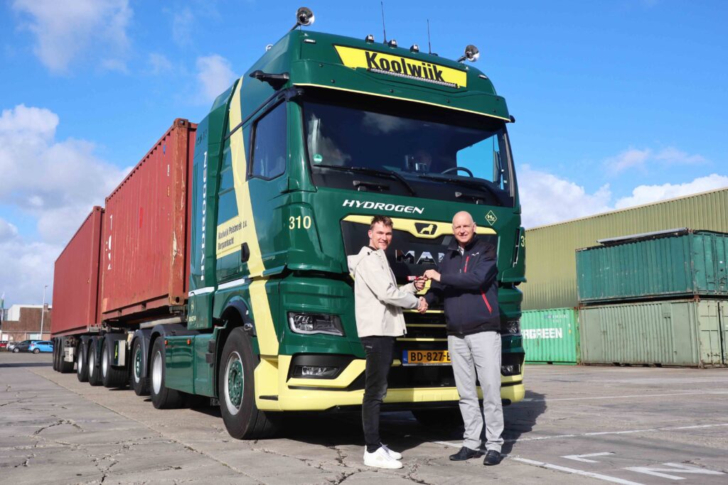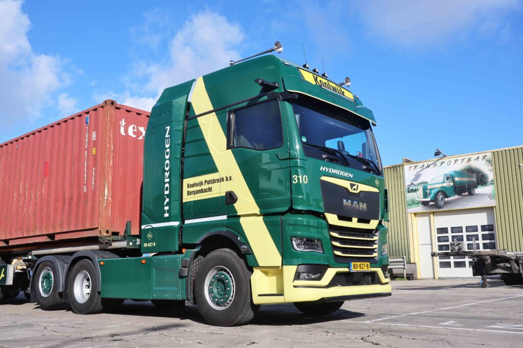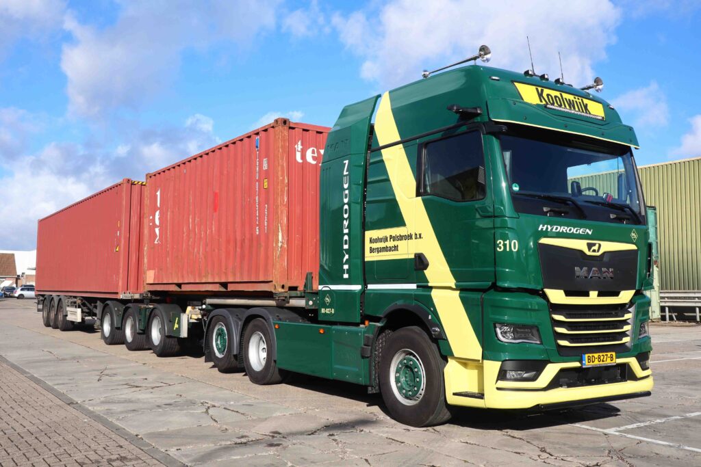 Koolwijk Logistics uit Bergambacht neemt een MAN hTGX met waterstof-verbrandingsmotor in gebruik. De sterke 6×2 trekker wordt ingezet als LZV met containers.